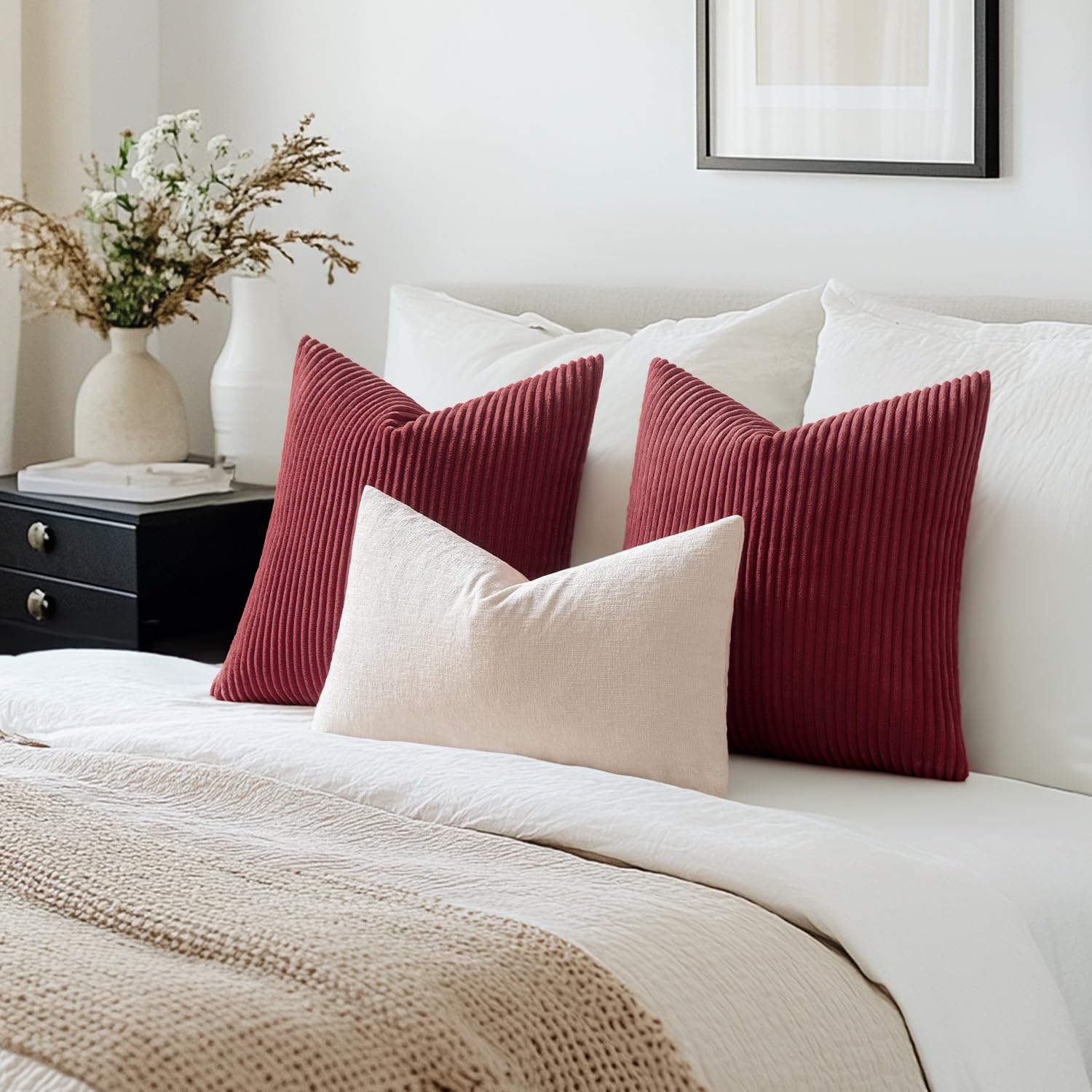 MIULEE 2er Set Kissenbezüge Kord Kissenhülle Dekorative Kissenbezug Sofakissen Couchkissen Dekokissen Zierkissenbezug Deko Kissenhülle mit Verstecktem Reissverschluss 40x40 cm WeinRot