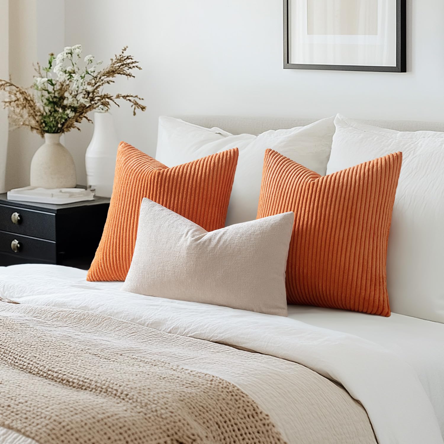 MIULEE 2er Set Kissenbezüge Kord Kissenhülle Dekorative Kissenbezug Sofakissen Couchkissen Dekokissen Zierkissenbezug Deko Kissenhülle mit Verstecktem Reissverschluss 40x40cm 16x16in Karamell
