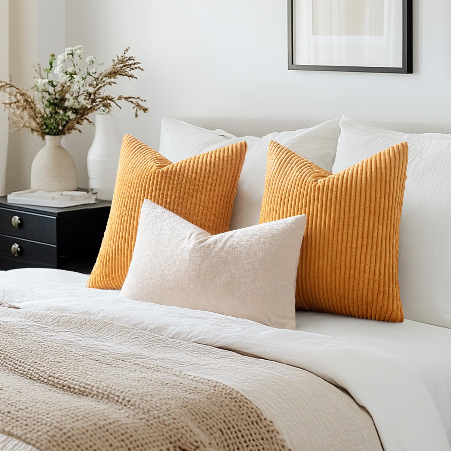 MIULEE 2er Set Kissenbezüge Kord Kissenhülle Dekorative Kissenbezug Sofakissen Couchkissen Dekokissen Zierkissenbezug Deko Kissenhülle mit Verstecktem Reissverschluss 40x40cm 16x16in Orange gebrannt