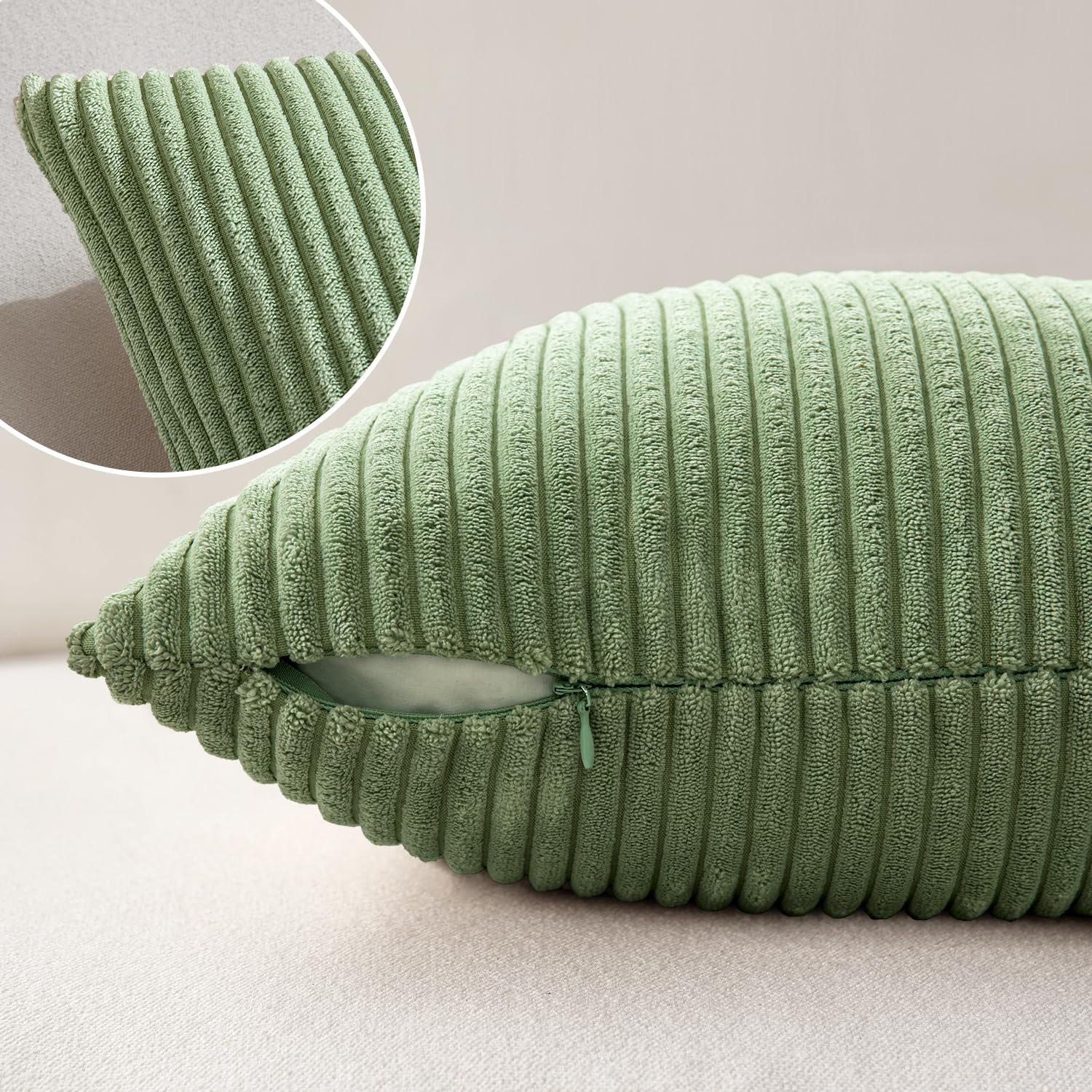MIULEE 2er Set Kissenbezüge Kordsamt Kissenbezug Zierkissenbezug Dekokissen Sofakissen Kord Kissenhülle Dekorative Zierkissenbezüge Kissen für Sofa Sessel Zuhause Schlafzimmer 40x40 cm Bohnengrün