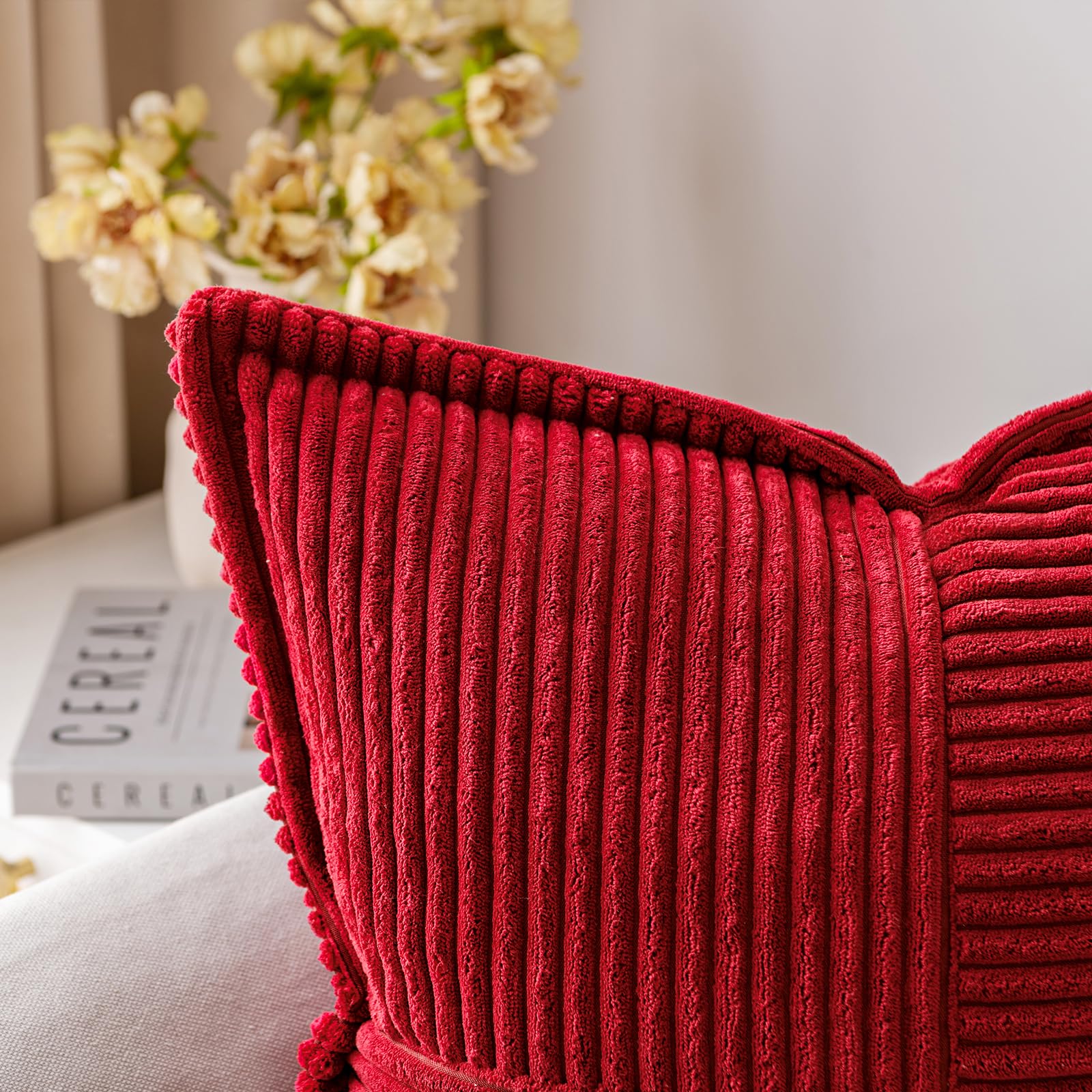 MIULEE 2er Set Kordsamt Kissenbezüge Samtkissen Weich Dekokissen Dekorativ Kissenbezug Modern Kissenhülle Sofakissen Zierkissen Couchkissen für Wohnzimmer Schlafzimmer Rot 40x40 cm