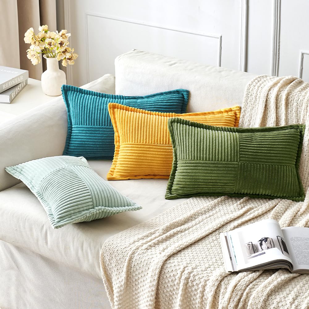 MIULEE 2er Set Kordsamt Kissenbezüge Samtkissen Weich Dekokissen Dekorativ Kissenbezug Modern Kissenhülle Sofakissen Zierkissen Couchkissen für Wohnzimmer Schlafzimmer 40x60cm Matcha Grün