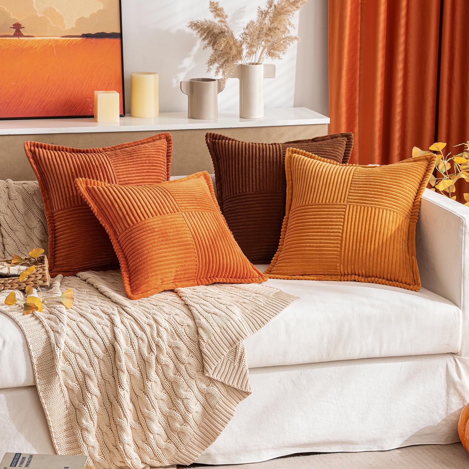 MIULEE 2er Set Kordsamt Kissenbezüge Samtkissen Weich Dekokissen Dekorativ Kissenbezug Modern Kissenhülle Sofakissen Zierkissen Couchkissen für Wohnzimmer Schlafzimmer Orange 40x40 cm