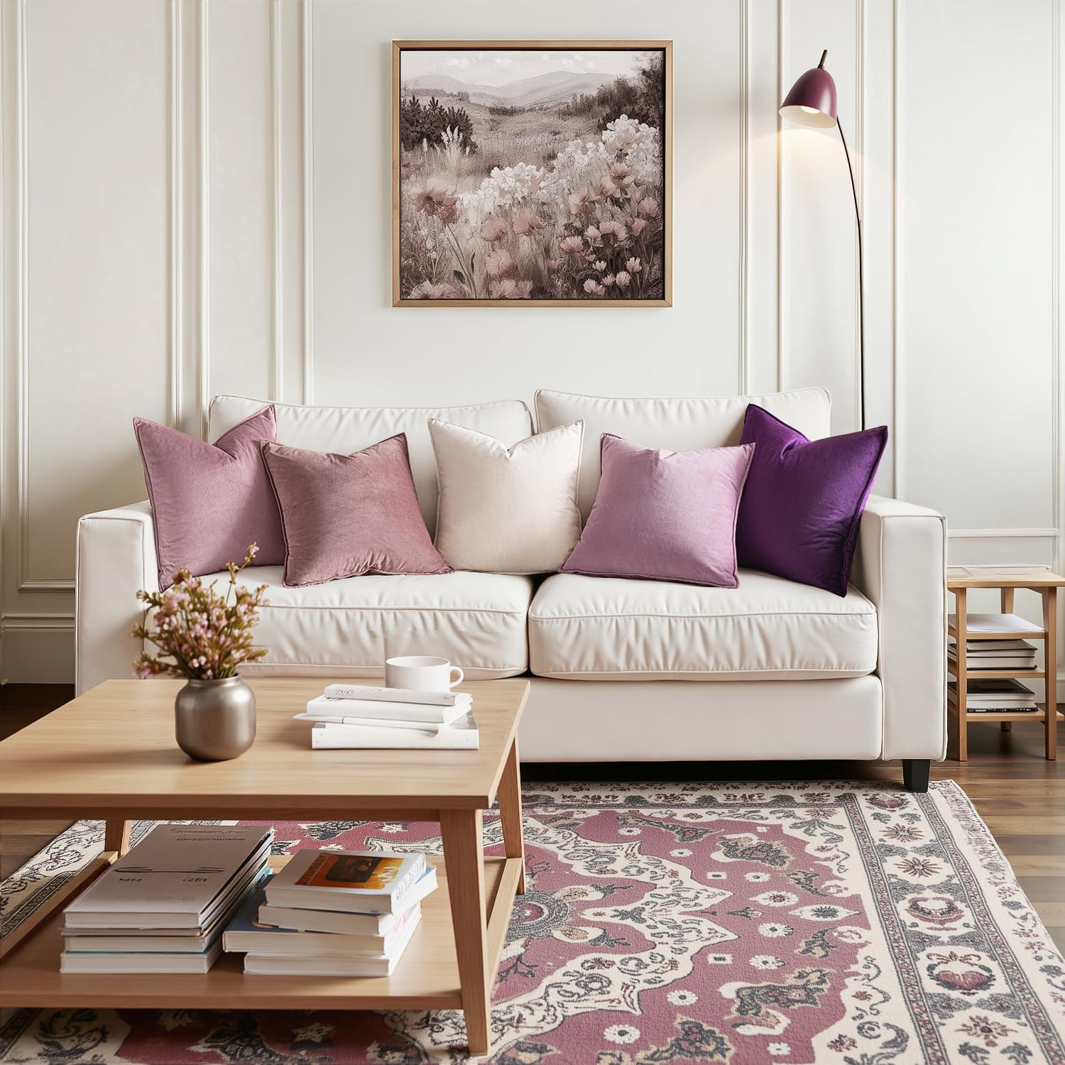 MIULEE 2er Set Samt Kissenbezug Flansch Kissenhülle Dekorative Sofakissen Dekokissen Umwickelte Kante Kissenbezüge Zierkissenbezug für Sofa Wohnzimmer Schlafzimmer 50x50 cm Aubergine Lila