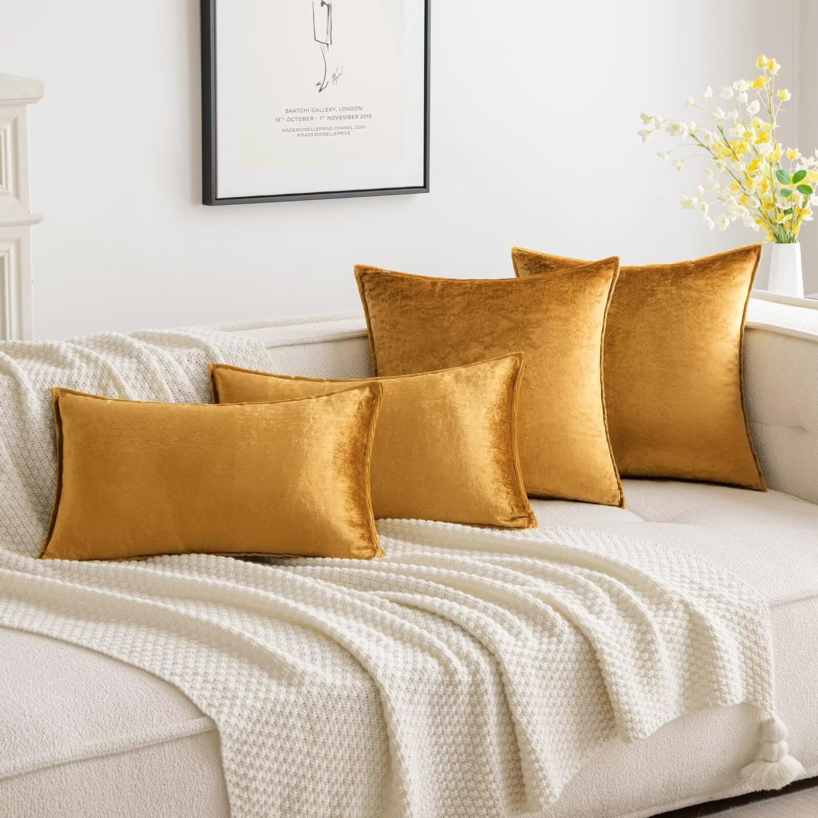 MIULEE 2er Set Samt Kissenbezug Flansch Kissenhülle Dekorative Sofakissen Dekokissen Umwickelte Kante Kissenbezüge Zierkissenbezug für Sofa Wohnzimmer Schlafzimmer 40x40 cm Champagner Golden