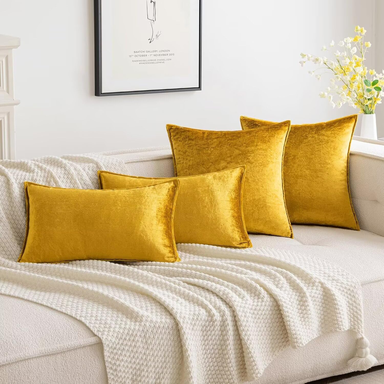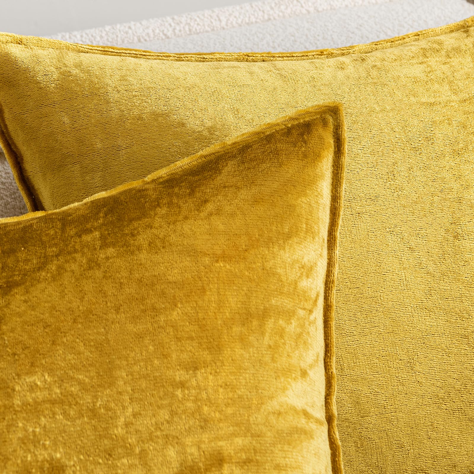 MIULEE 2er Set Samt Kissenbezug Flansch Kissenhülle Dekorative Sofakissen Dekokissen Umwickelte Kante Kissenbezüge Zierkissenbezug für Sofa Wohnzimmer Schlafzimmer 40x40 cm Golden Luxuriös