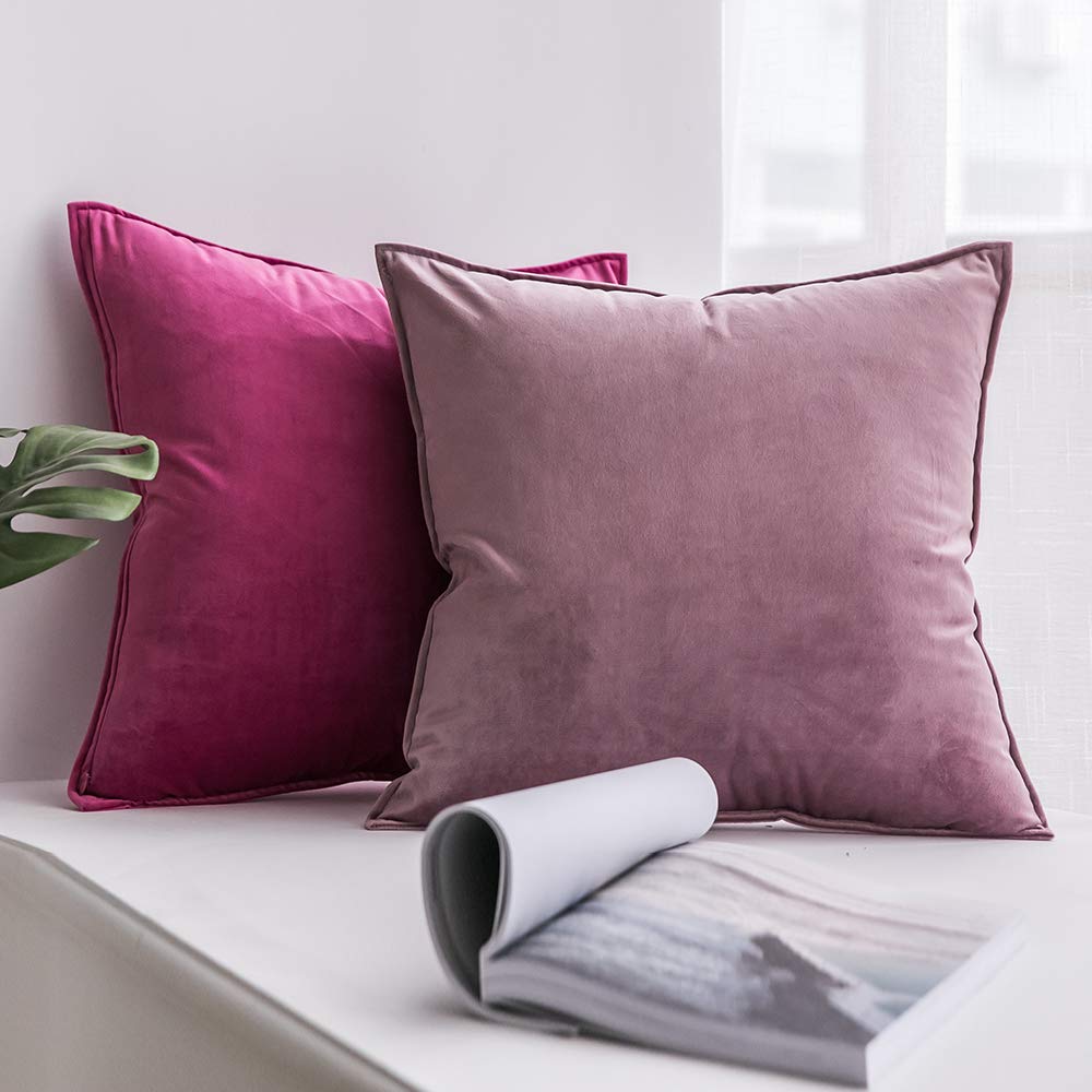 MIULEE 2er Set Samt Kissenbezug Flansch Kissenhülle Dekorative Sofakissen Dekokissen Umwickelte Kante Kissenbezüge Zierkissenbezug für Sofa Wohnzimmer Schlafzimmer 40x60 cm Rose Rot