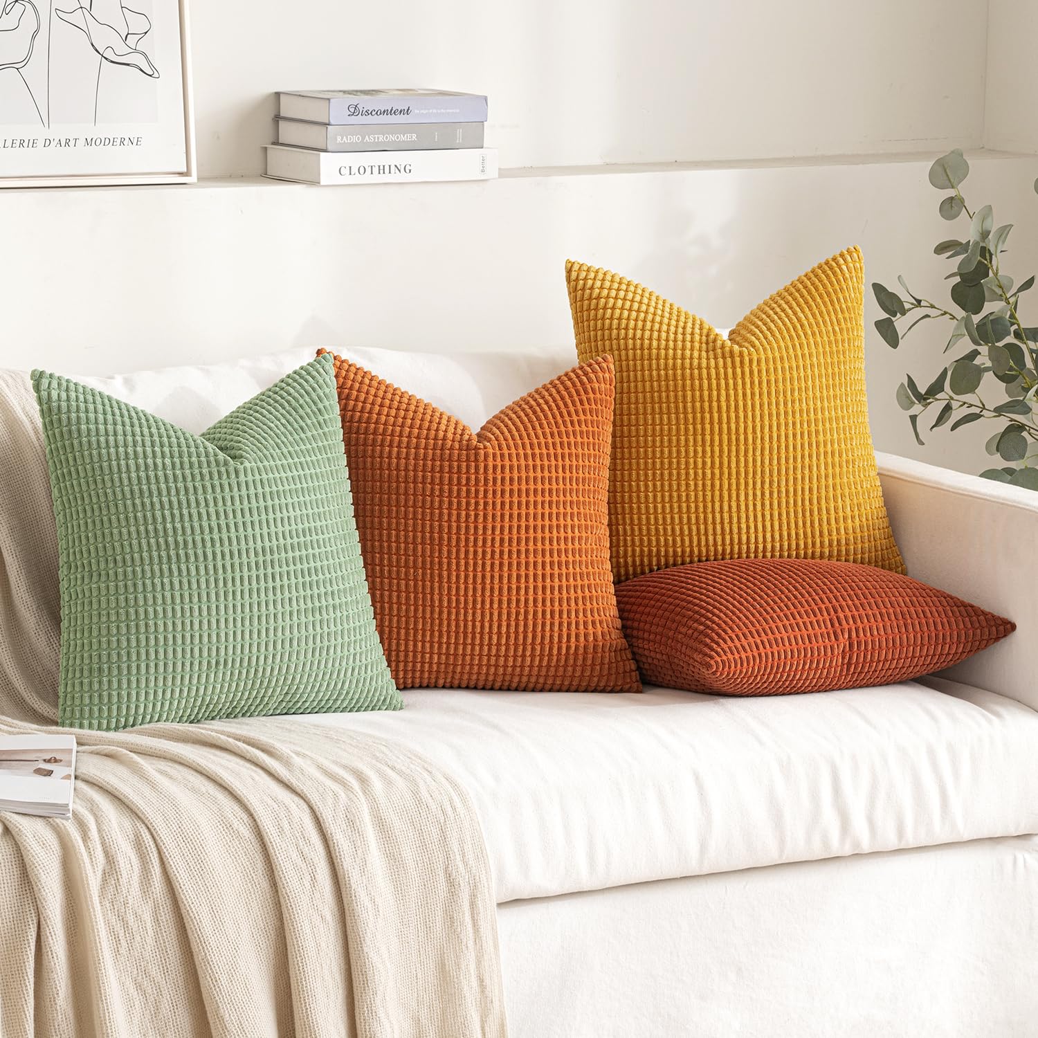 MIULEE 4er Set Kissenbezug Kissen Dekorative Kissenbezüge Kordsamt Sofakissen Dekokissen Kopfkissenbezug Couchkissen Deko Bezug für Sofa Couch Wohnzimmer Schlafzimmer Büro 40x40cm Orange und Grün