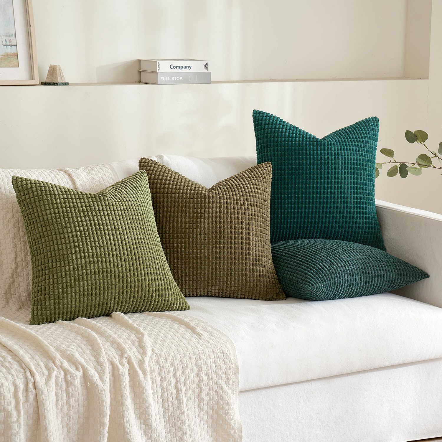 MIULEE 4er Set Kissenbezug Kissen Dekorative Kissenbezüge Kordsamt Sofakissen Dekokissen Kopfkissenbezug Couchkissen Deko Bezug für Sofa Couch Wohnzimmer Schlafzimmer 45x45cm Grüne Serie