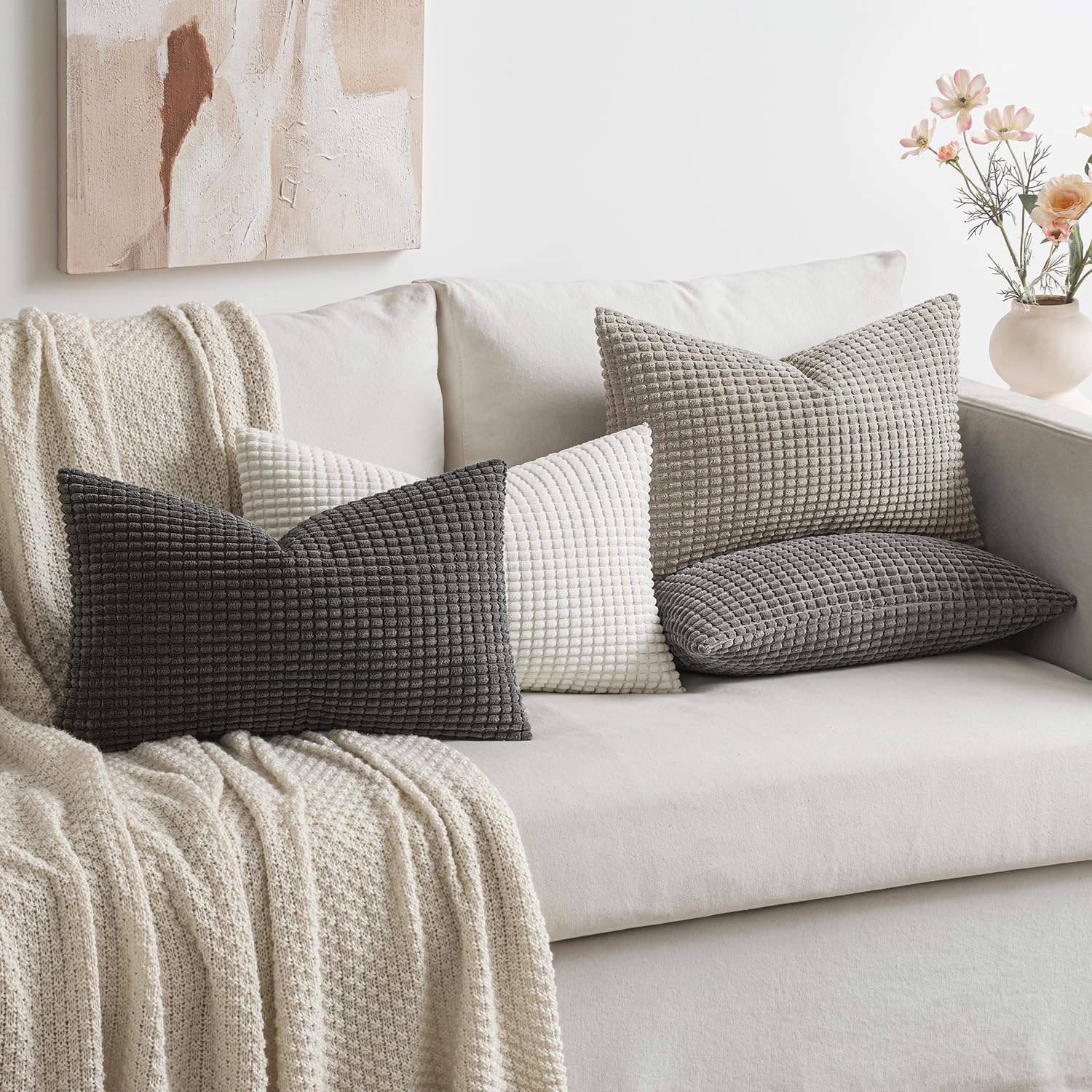 MIULEE 4er Set Kissenbezug Kissen Dekorative Kissenbezüge Kordsamt Sofakissen Dekokissen Kopfkissenbezug Couchkissen Deko Bezug für Sofa Couch Wohnzimmer Schlafzimmer Büro 40x60cm Graue Serie