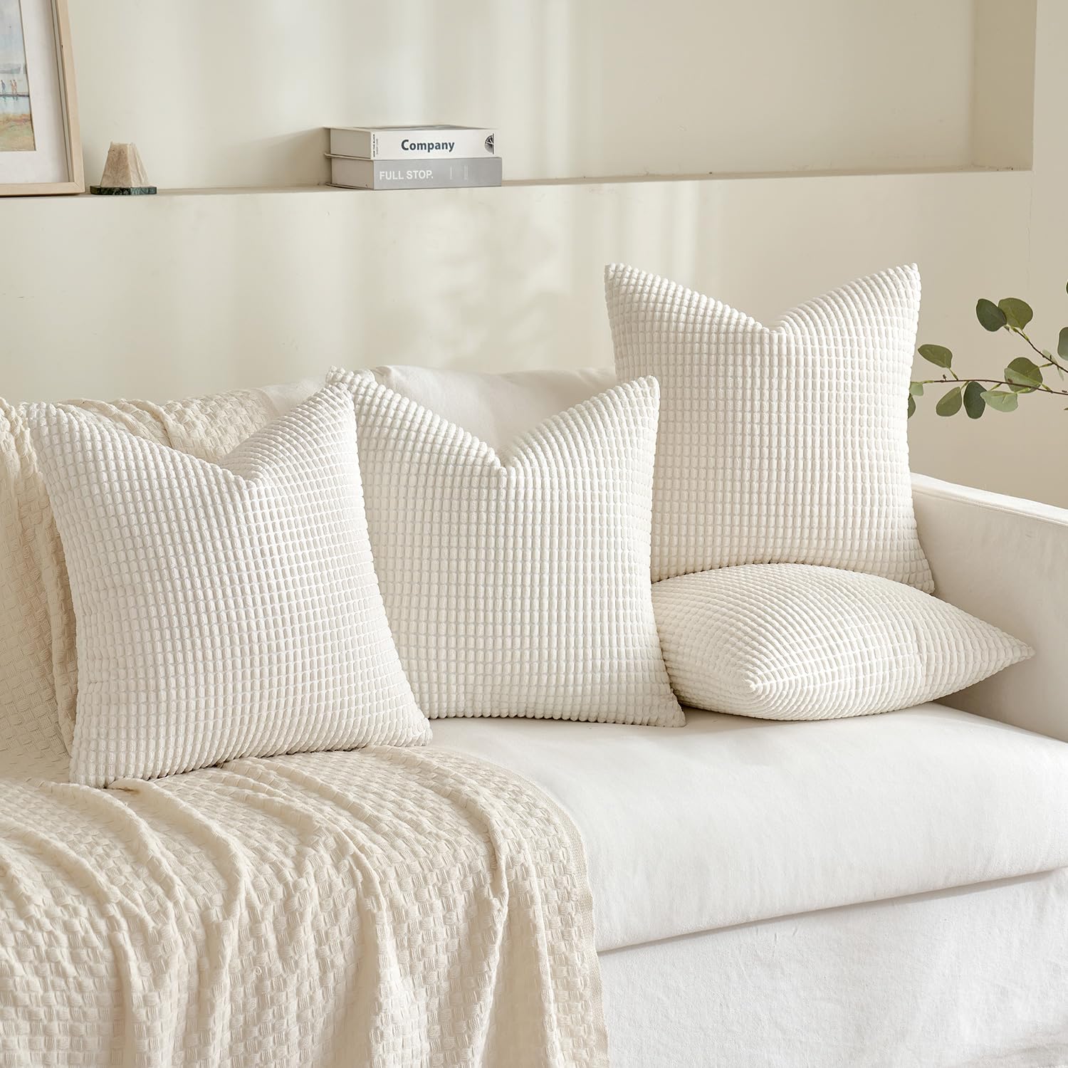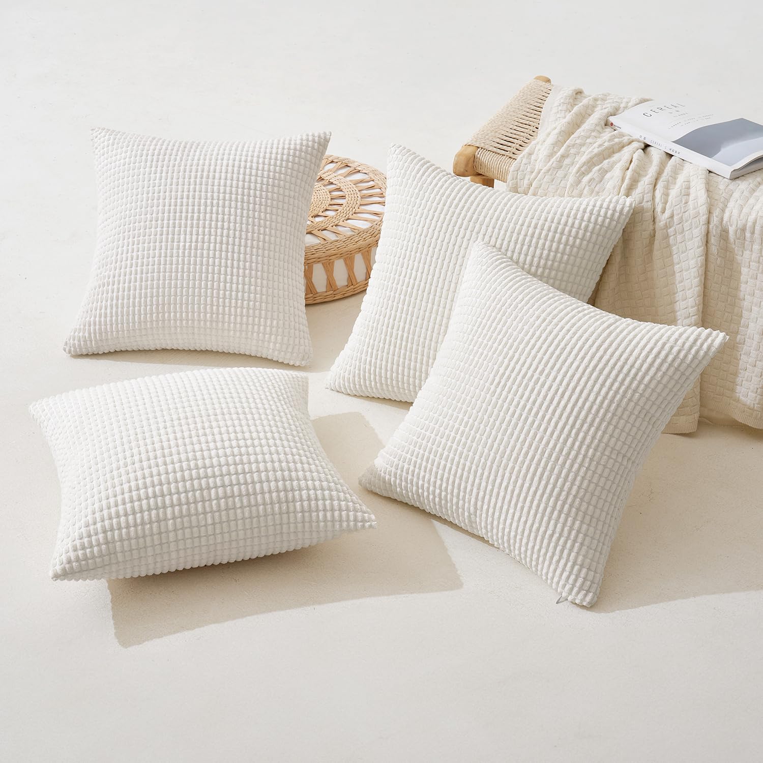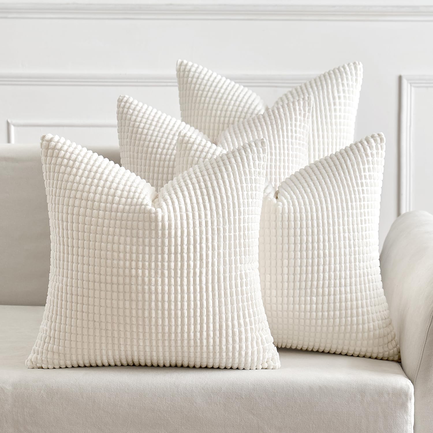 MIULEE 4er Set Kissenbezug Dekorative Kissenbezüge Kordsamt Boho Sofakissen Dekokissen Zierkissen Couchkissen Deko Bezug für Sofa Couch Wohnzimmer Schlafzimmer Büro 50x50 cm Weiss