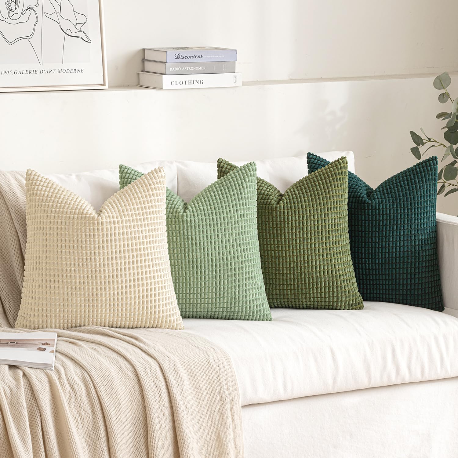 MIULEE 4er Set Kissenbezug Kissen Dekorative Kissenbezüge Kordsamt Sofakissen Dekokissen Kopfkissenbezug Couchkissen Deko Bezug für Sofa Couch Wohnzimmer Schlafzimmer 40x40cm Hellgrün