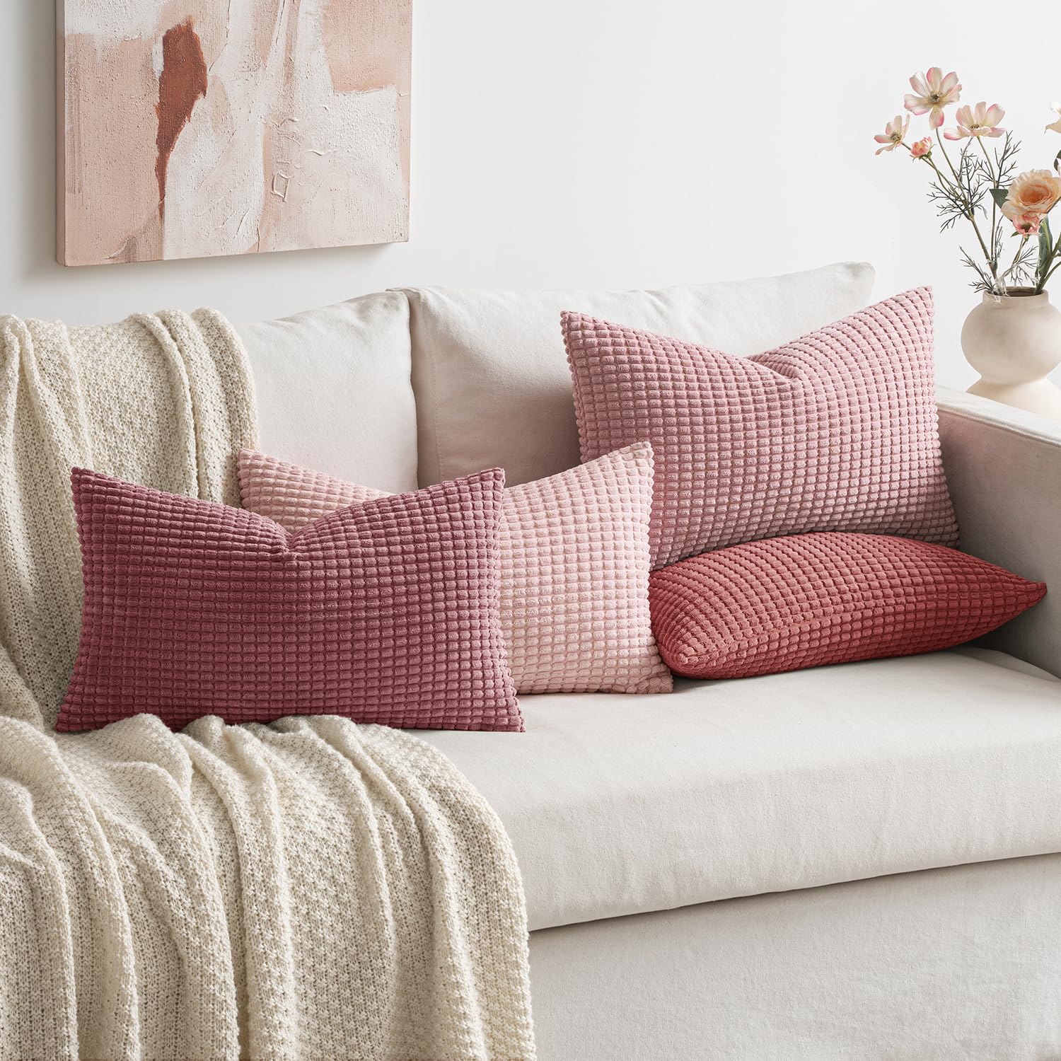 MIULEE 4er Set Kissenbezug Kissen Dekorative Kissenbezüge Kordsamt Sofakissen Dekokissen Kopfkissenbezug Couchkissen Deko Bezug für Sofa Couch Wohnzimmer Schlafzimmer Büro 40x60cm Rosa Serie