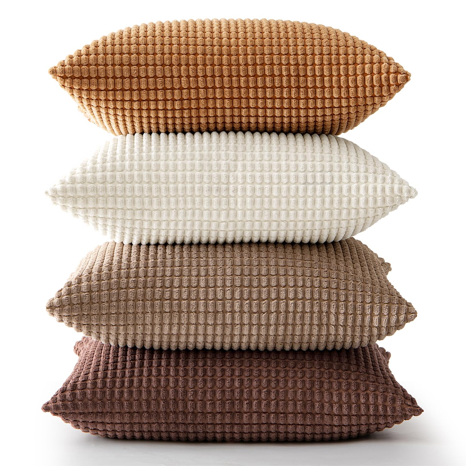 MIULEE Kissenbezug 50x50 4er Set Gelb-Braun Kissenbezüge Dekorative Kordsamt Sofakissen Dekokissen Kopfkissenbezug Couchkissen Deko Bezug für Sofa Couch Wohnzimmer Schlafzimmer Büro