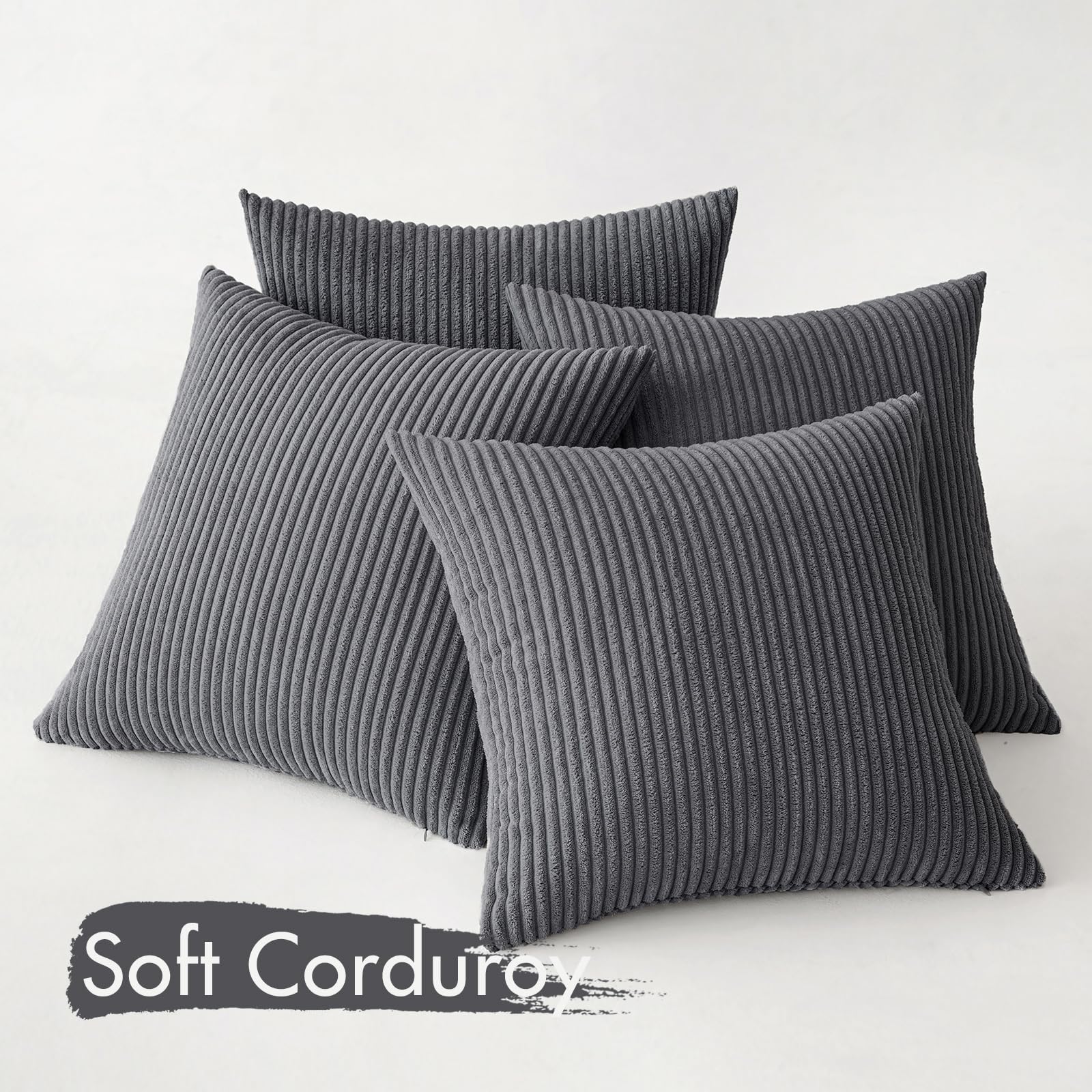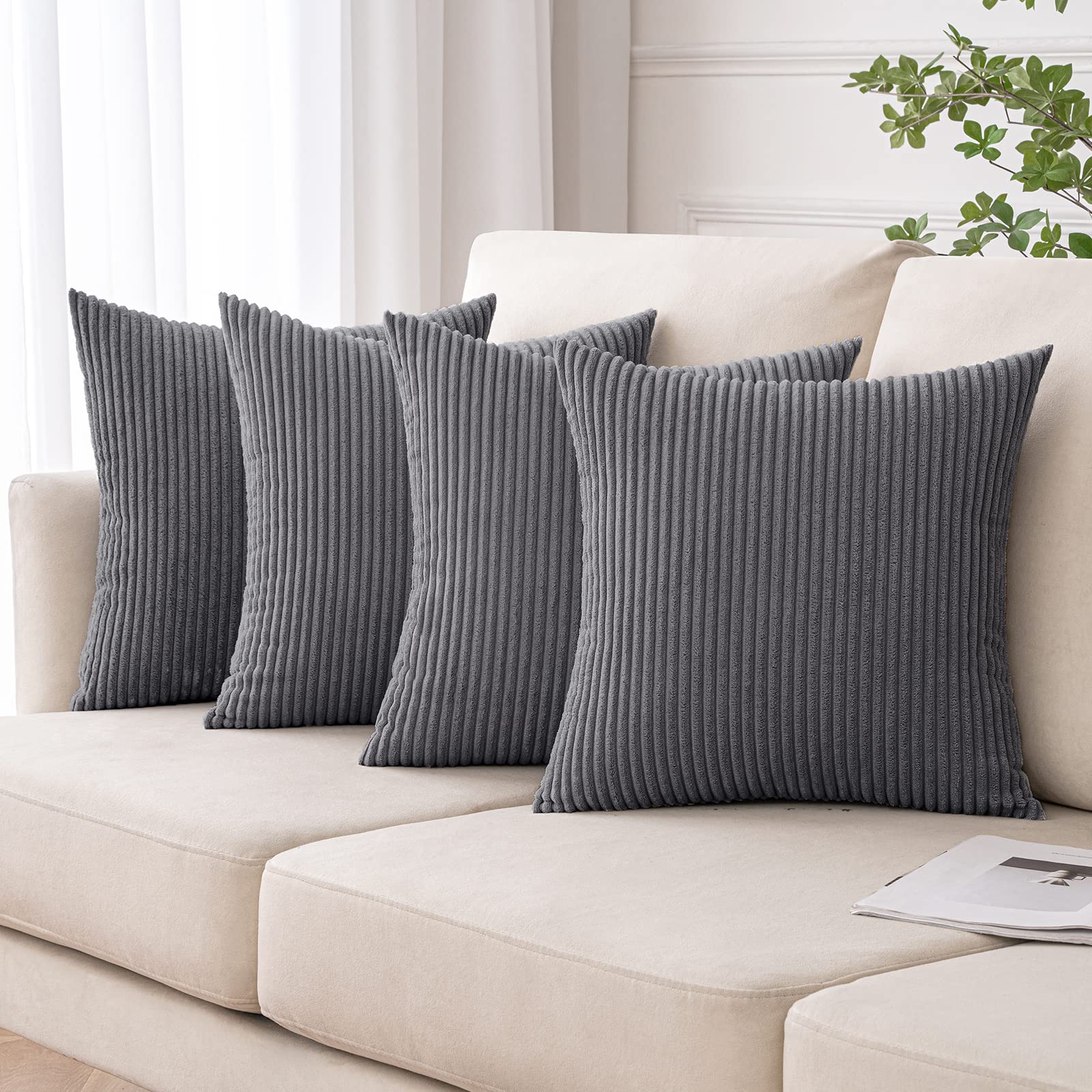 MIULEE 4er Set Kissenbezüge Kord Kissenhülle Dekorative Kissenbezug Sofakissen Couchkissen Dekokissen Zierkissenbezug Deko Kissenhülle mit Verstecktem Reissverschluss 45x45cm 18x18in Dunkelgrau