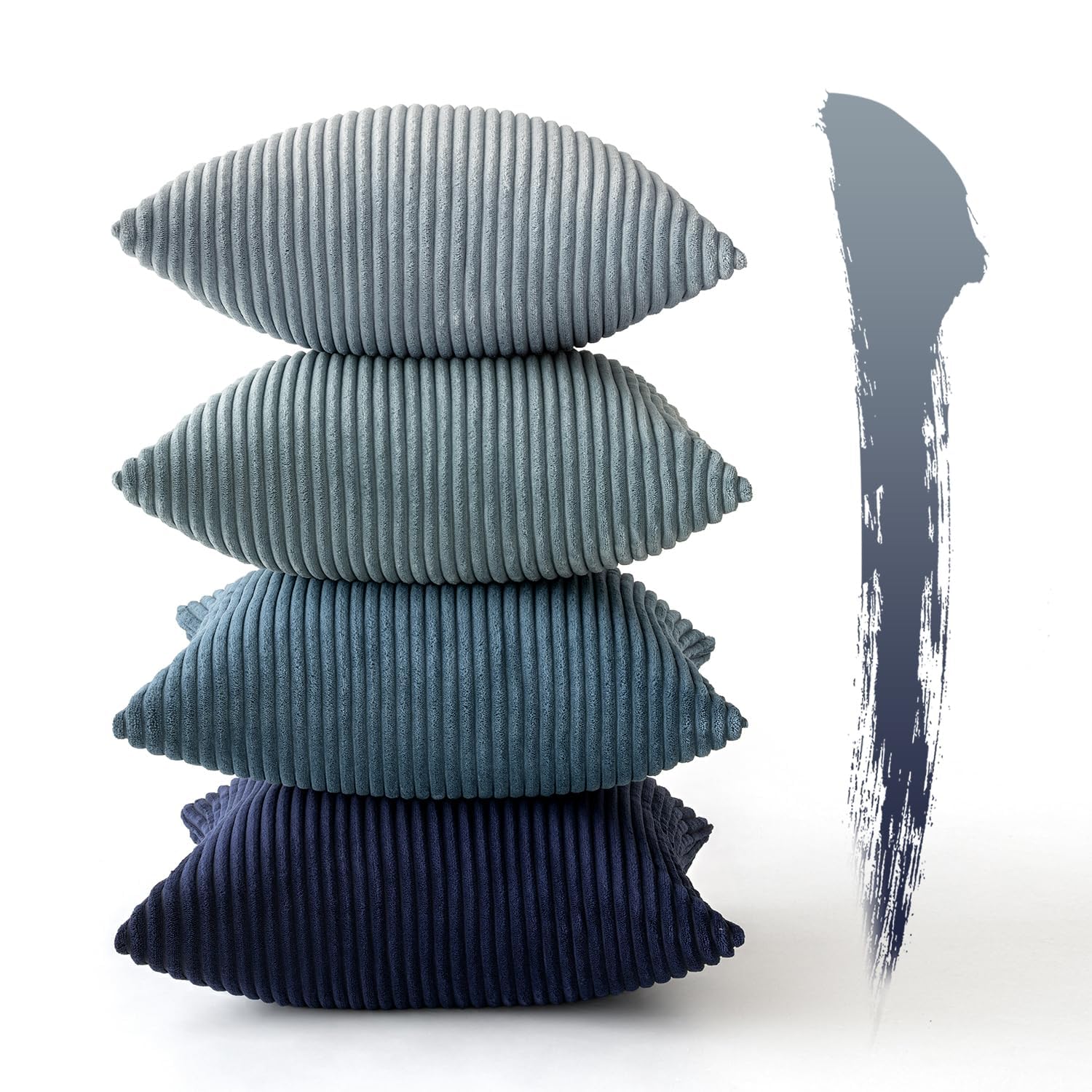 MIULEE Kordsamt Kissenbezug Weiche Kissenhülle Dekorative Sofakissen Quadratische Dekokissen Zierkissenbezug Gestreifte Kissenbezüge für Wohnzimmer Schlafzimmer 4 Stück 60x60cm Dunkelblaue Serie