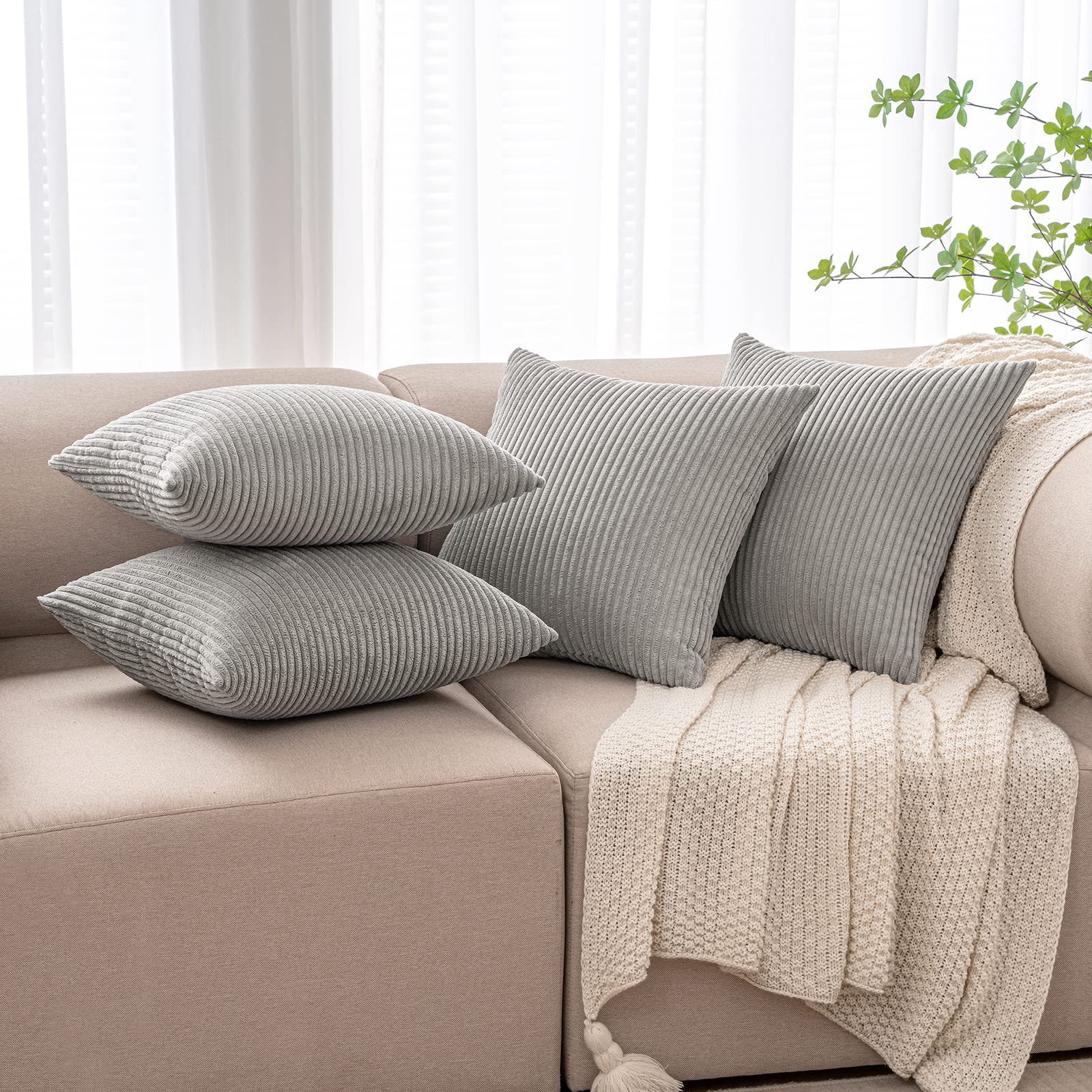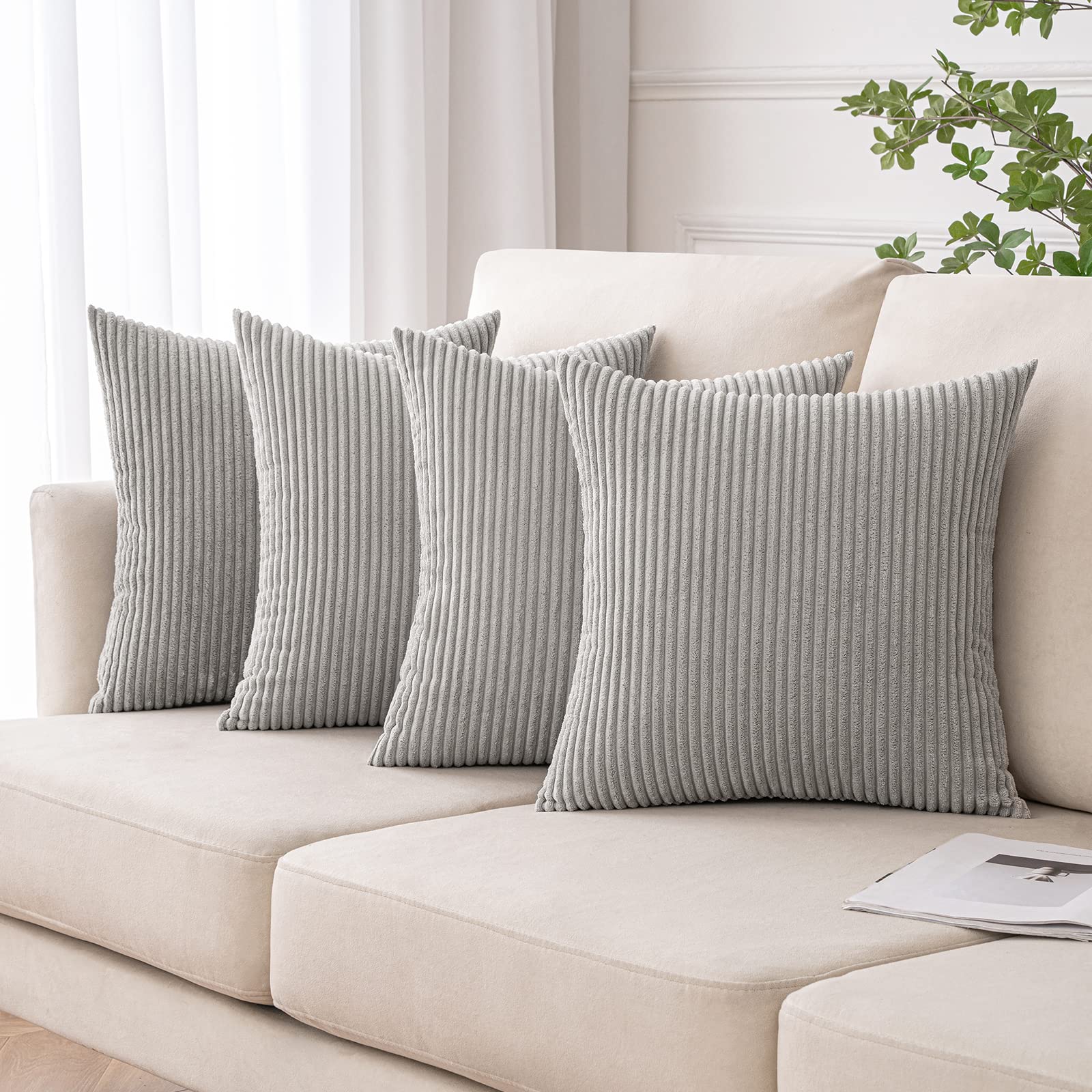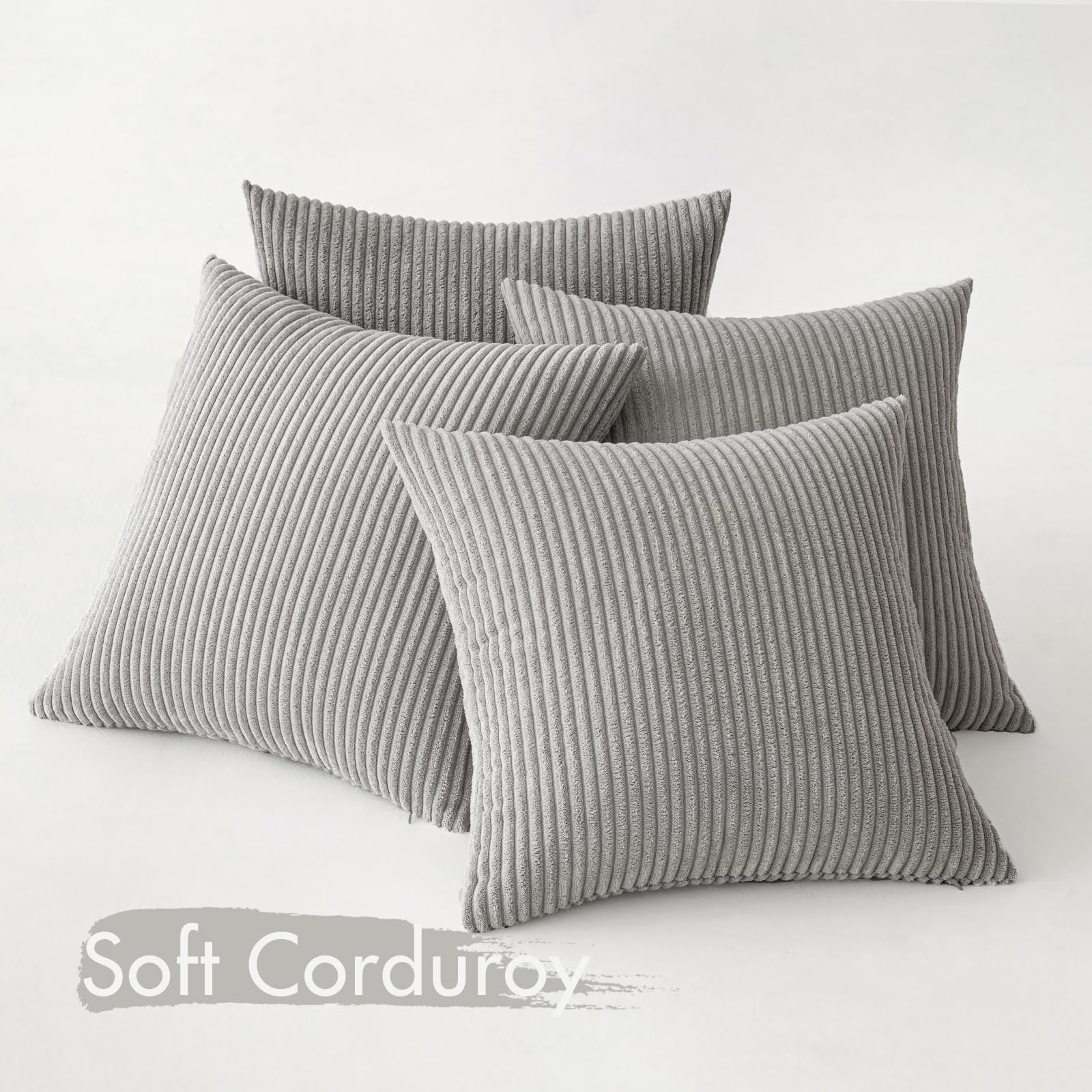 MIULEE 4er Set Kissenbezüge Kord Kissenhülle Dekorative Kissenbezug Sofakissen Couchkissen Dekokissen Zierkissenbezug Deko Kissenhülle mit Verstecktem Reissverschluss 50x50cm 20x20in Hellgrau