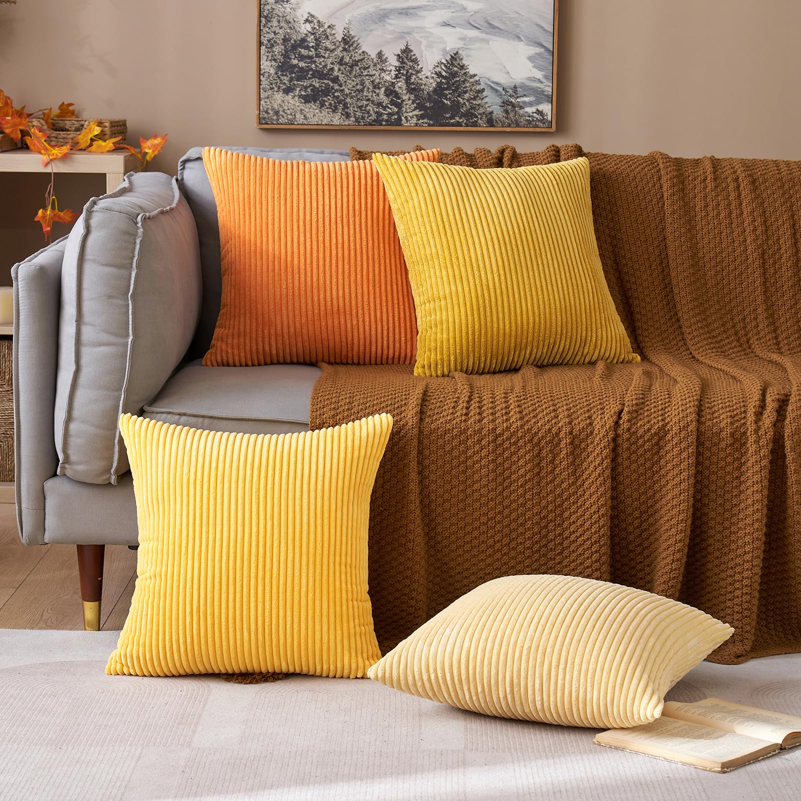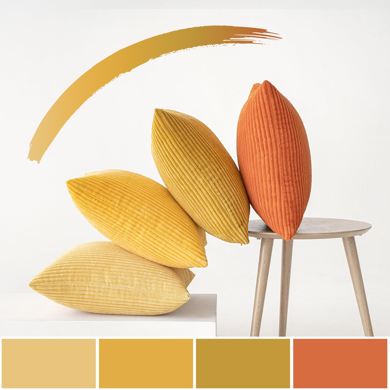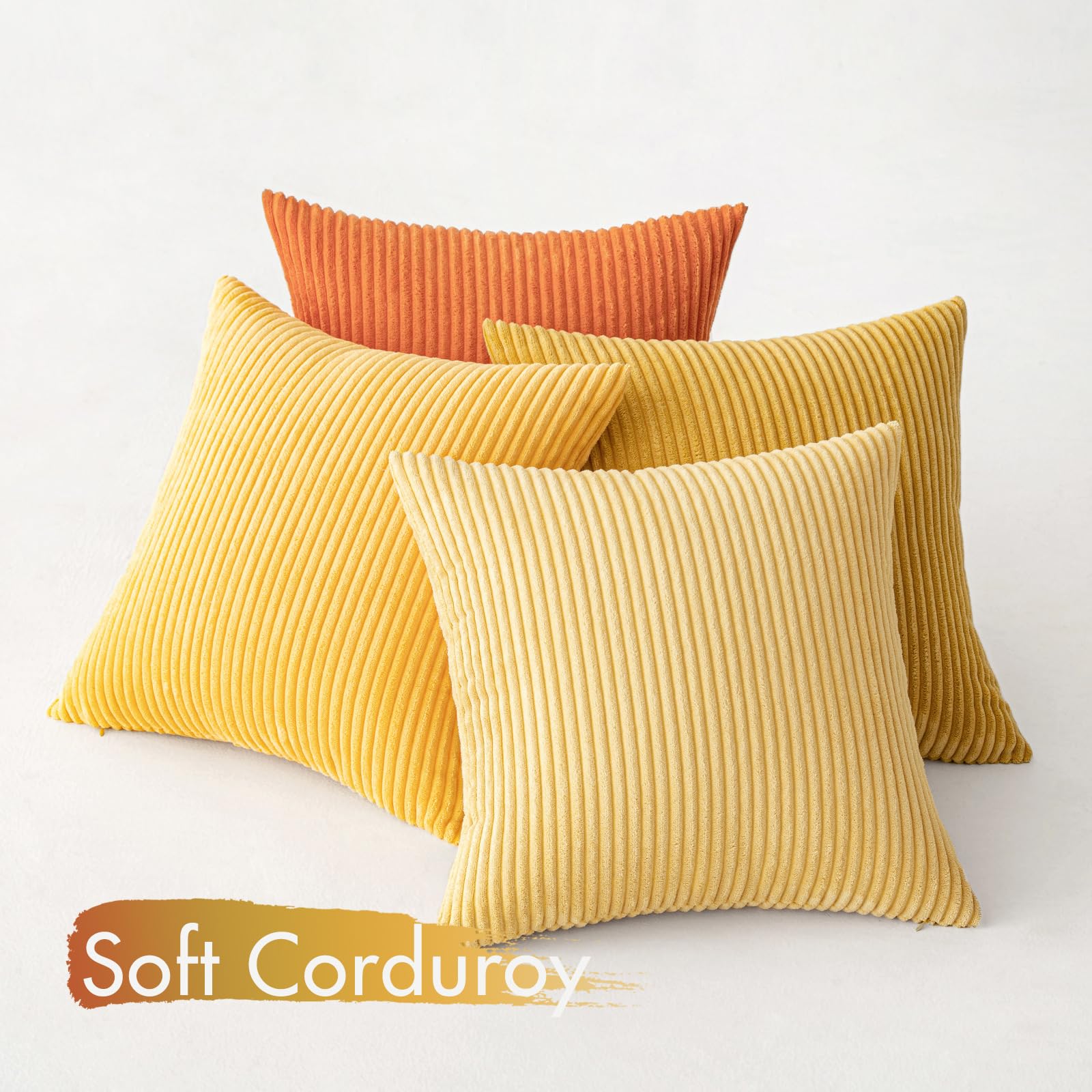 MIULEE Kordsamt Kissenbezug Weiche Kissenhülle Dekorative Sofakissen Quadratische Dekokissen Moderne Zierkissenbezug Gestreifte Kissenbezüge für Wohnzimmer Schlafzimmer 4 Stück 40x40cm Orange