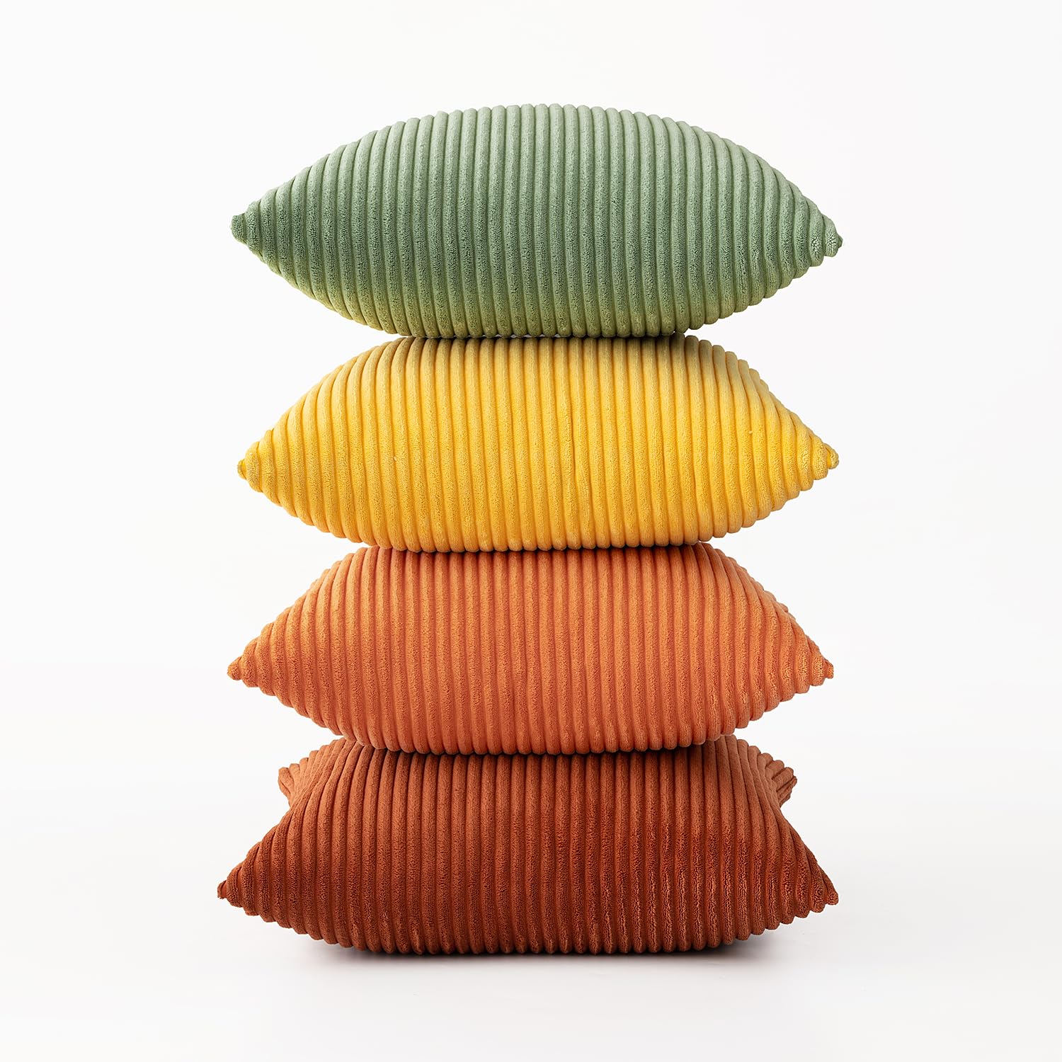 MIULEE Kordsamt Kissenbezug Weiche Kissenhülle Dekorative Sofakissen Quadratische Dekokissen Zierkissenbezug Gestreifte Kissenbezüge für Wohnzimmer Schlafzimmer 4 Stück 40x40cm Orange grüne Serie
