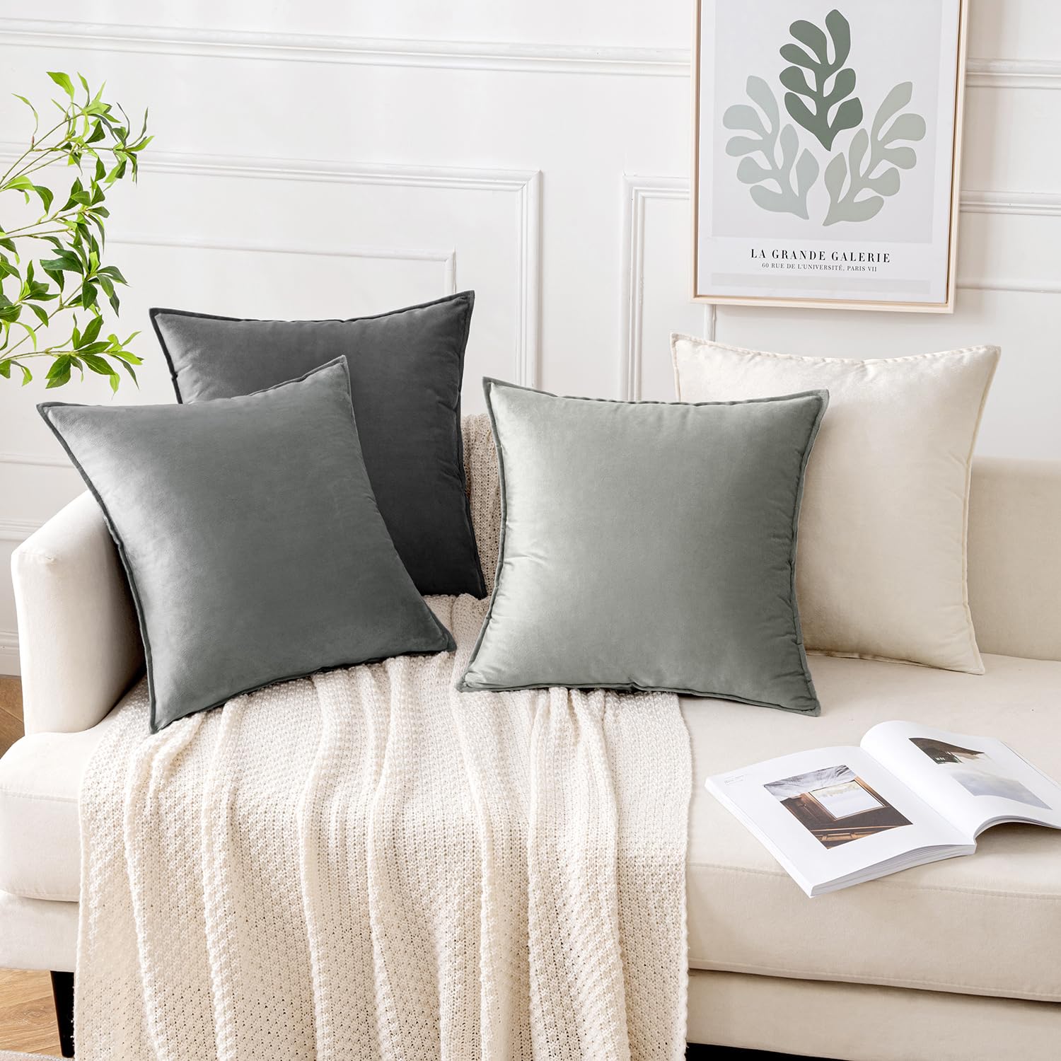 MIULEE 4er Set Samt Kissenbezug 40x40 cm Grau Serie Dekorative Kissenhülle Sofakissen Dekokissen Umwickelte Kante Kissenbezüge Zierkissenbezug für Sofa Wohnzimmer Schlafzimmer