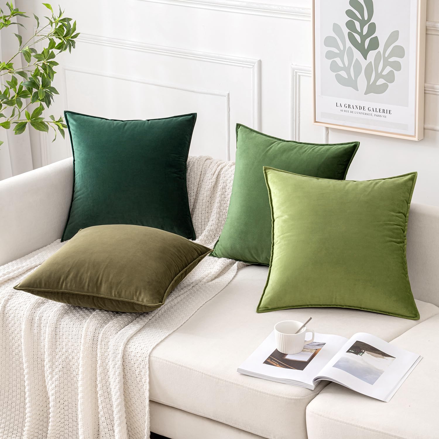 MIULEE Kissenbezug 40x40 cm grün 4er Set Samt Kissenbezüge Kissenhülle Dekokissenbezug dekokissen deko für Sofa Schlafzimmer Wohnzimmer Balkon Kinder flauschig Farbverlauf sofakissen