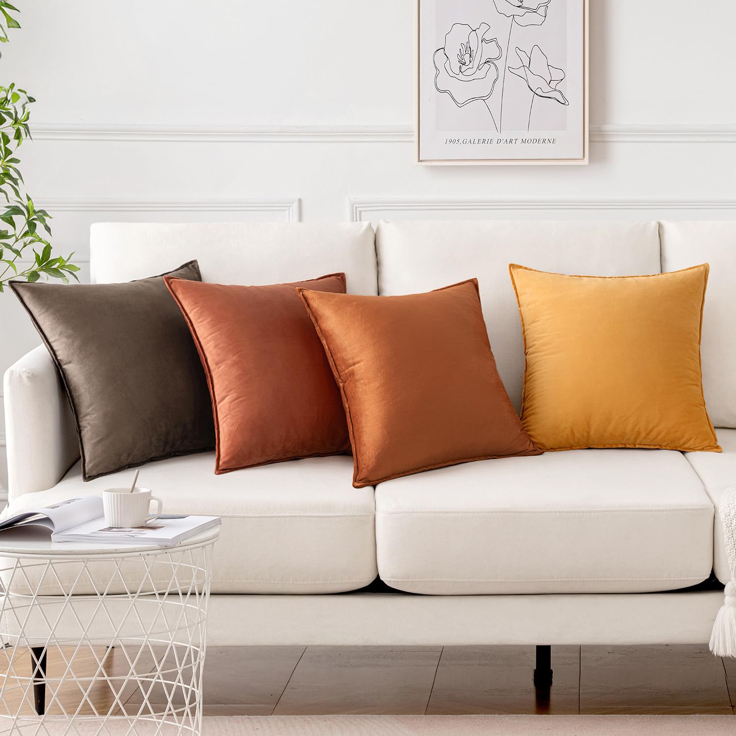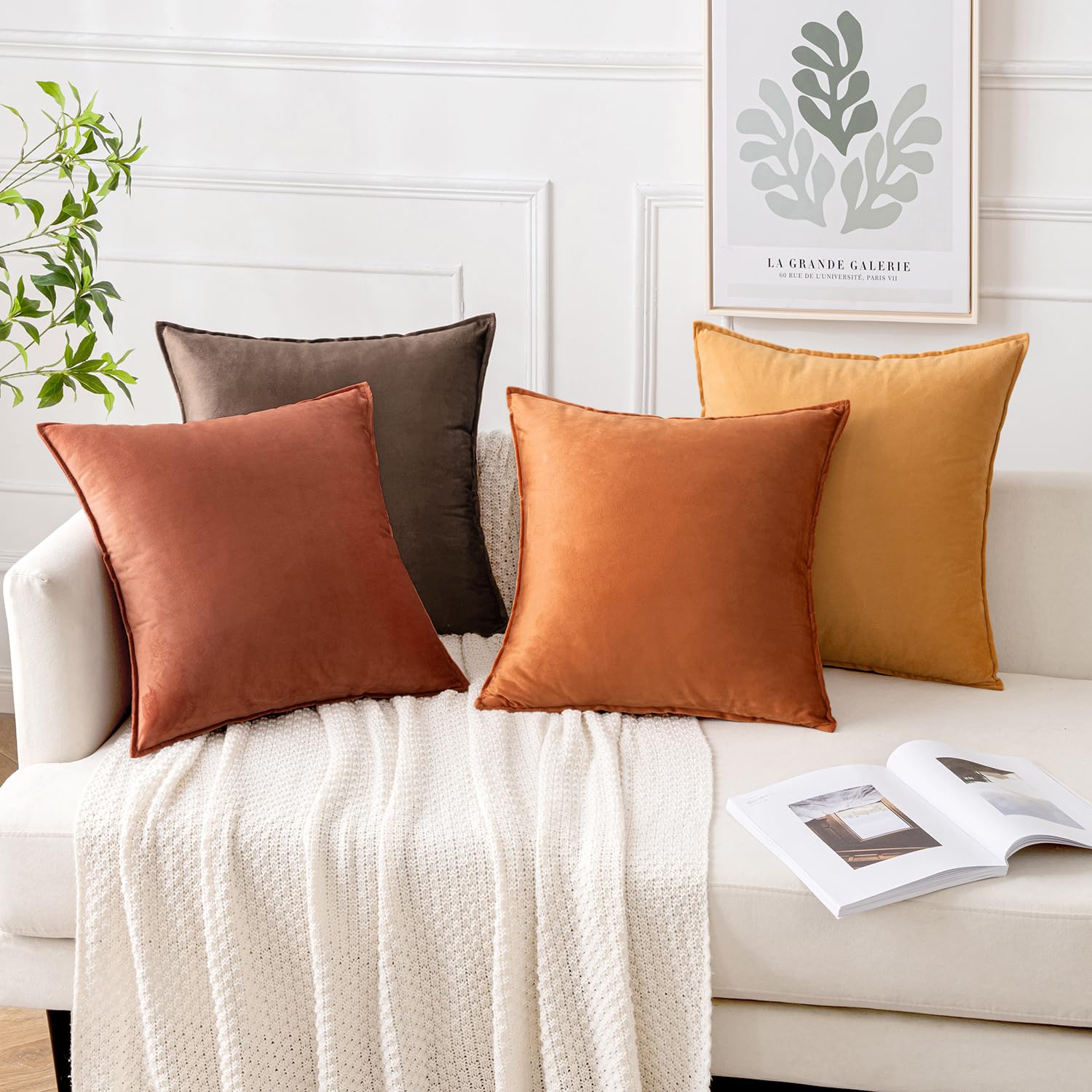 MIULEE 4er Set Samt Kissenbezug 45x45 cm Khaki Serie Dekorative Kissenhülle Sofakissen Dekokissen Umwickelte Kante Kissenbezüge Zierkissenbezug für Sofa Wohnzimmer Schlafzimmer
