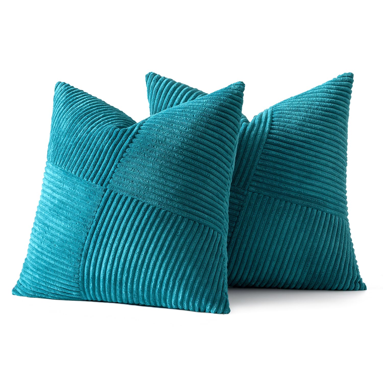 MIULEE Kissenbezug 60x60 Blauer See Kordsamt 2er Set Kissenbezüge Zierkissenbezug Kissenhülle Sofakissen Dekokissen Streifen Muster Patchwork Design für Wohnzimmer