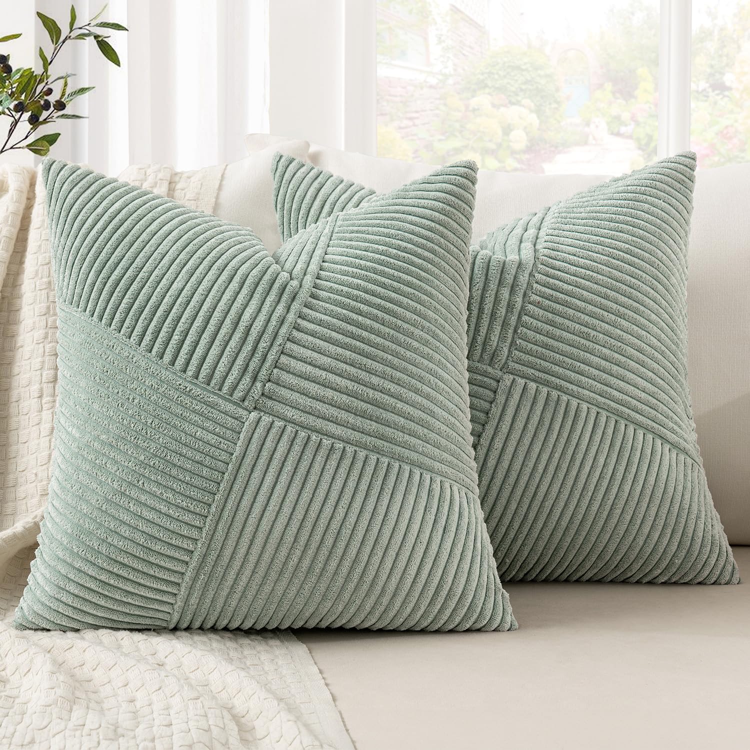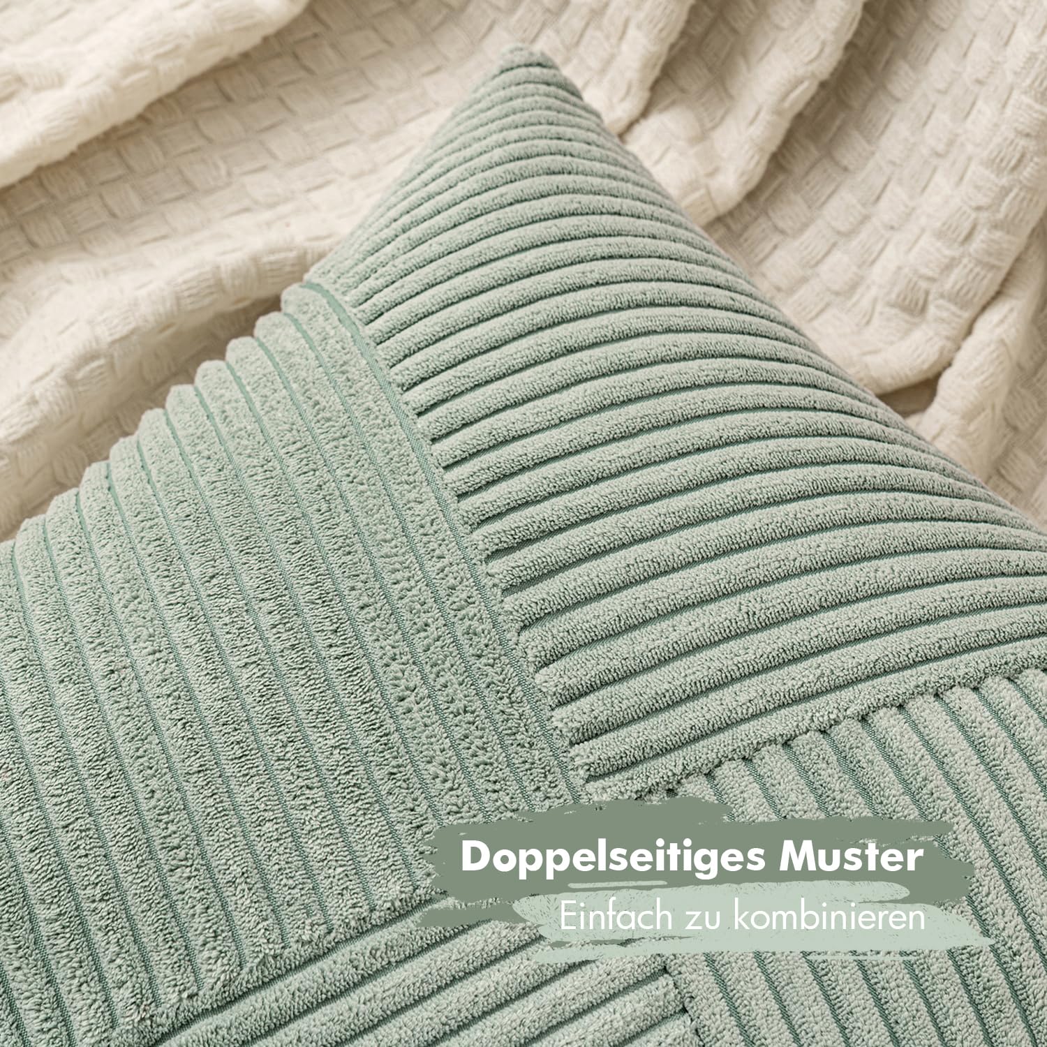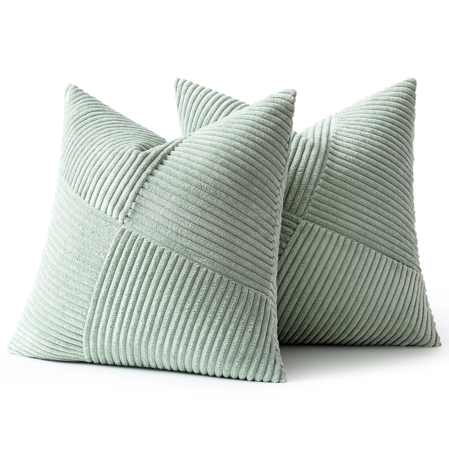 MIULEE Kissenbezug 50x50 Graugrün Kordsamt 2er Set Kissenbezüge Zierkissenbezug Kissenhülle Sofakissen Dekokissen Streifen Muster Patchwork Design für Wohnzimmer