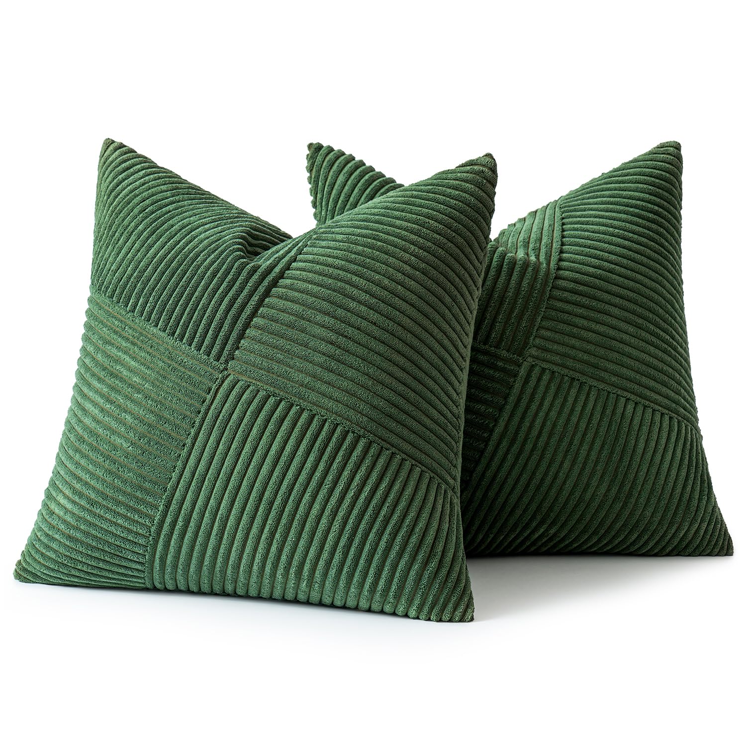 MIULEE Kissenbezug 40x40 Dunkelgrün Kordsamt 2er Set Kissenbezüge Zierkissenbezug Kissenhülle Sofakissen Dekokissen Streifen Muster Patchwork Design für Wohnzimmer