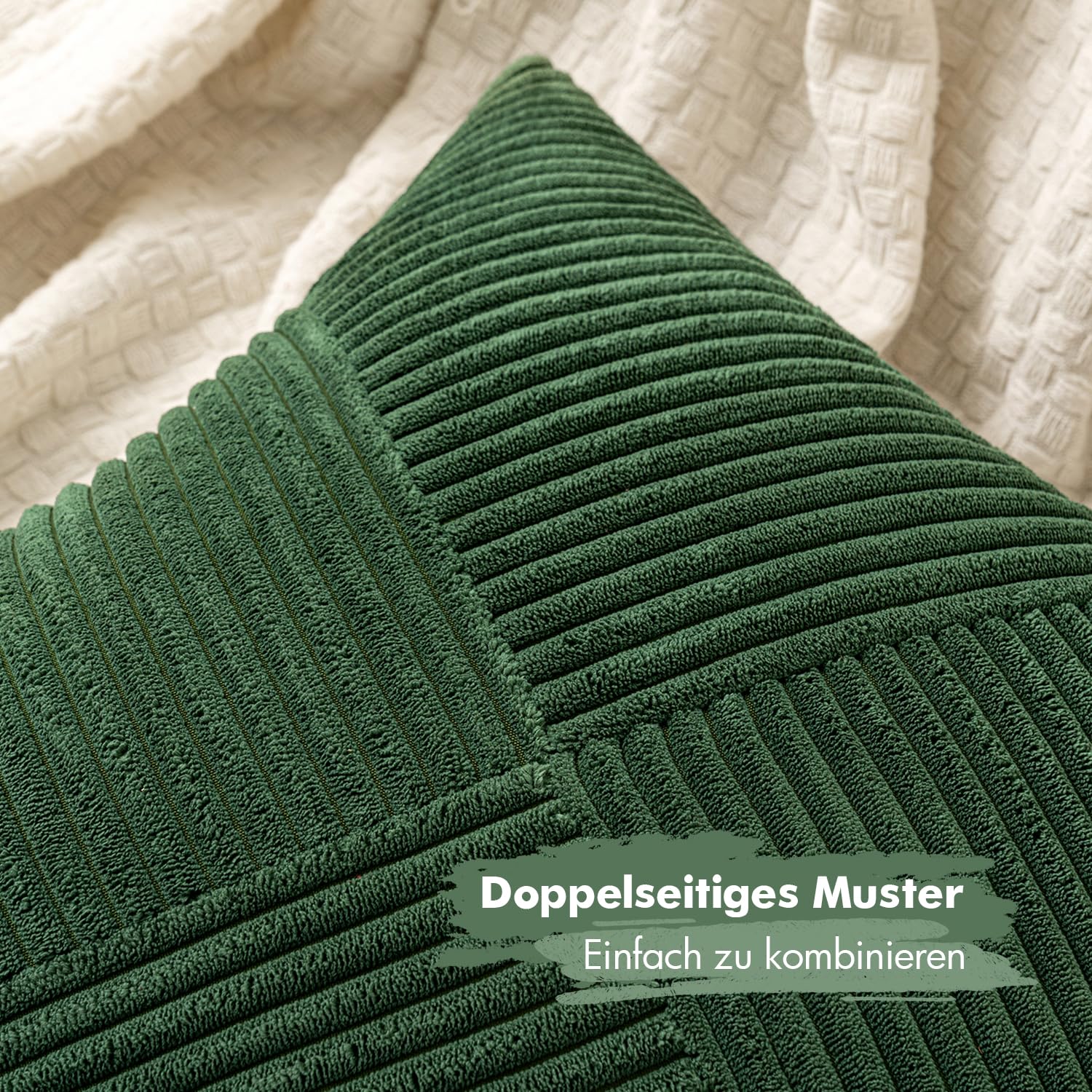 MIULEE Kissenbezug 50x50 Dunkelgrün Kordsamt 2er Set Kissenbezüge Zierkissenbezug Kissenhülle Sofakissen Dekokissen Streifen Muster Patchwork Design für Wohnzimmer