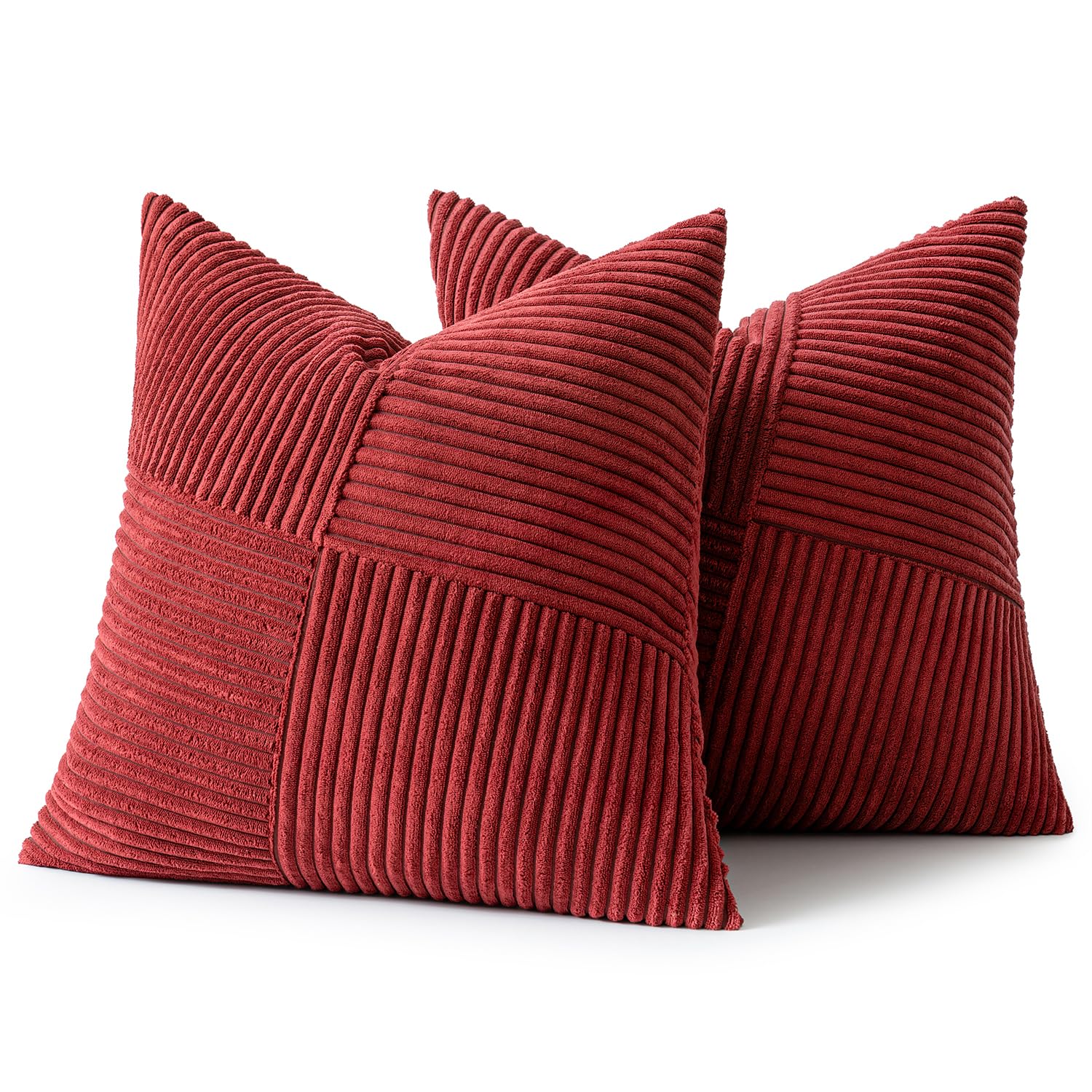 MIULEE Weihnachten Kissenbezug 50x50 Weinrot Kordsamt 2er Set Kissenbezüge Zierkissenbezug Kissenhülle Sofakissen Dekokissen Streifen Muster Patchwork Design für Wohnzimmer