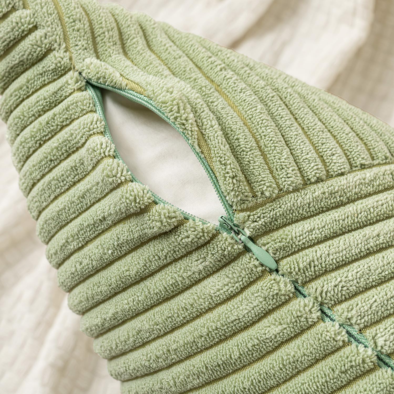 Design: Der Reissverschluss dieses Kissenbezugs ist versteckt, und die Farbe des Reissverschlusses ist gleich wie die Farbe des Kissenbezugs, was den ganze Kissenbezug harmonischer und schöner aussehen lässt.