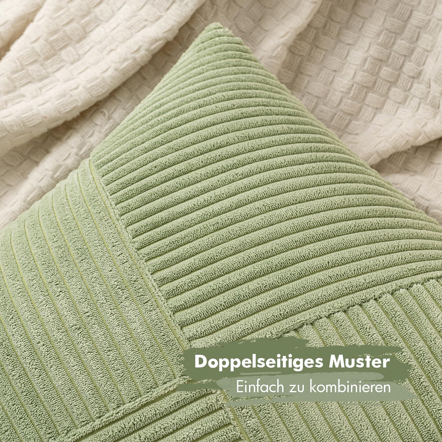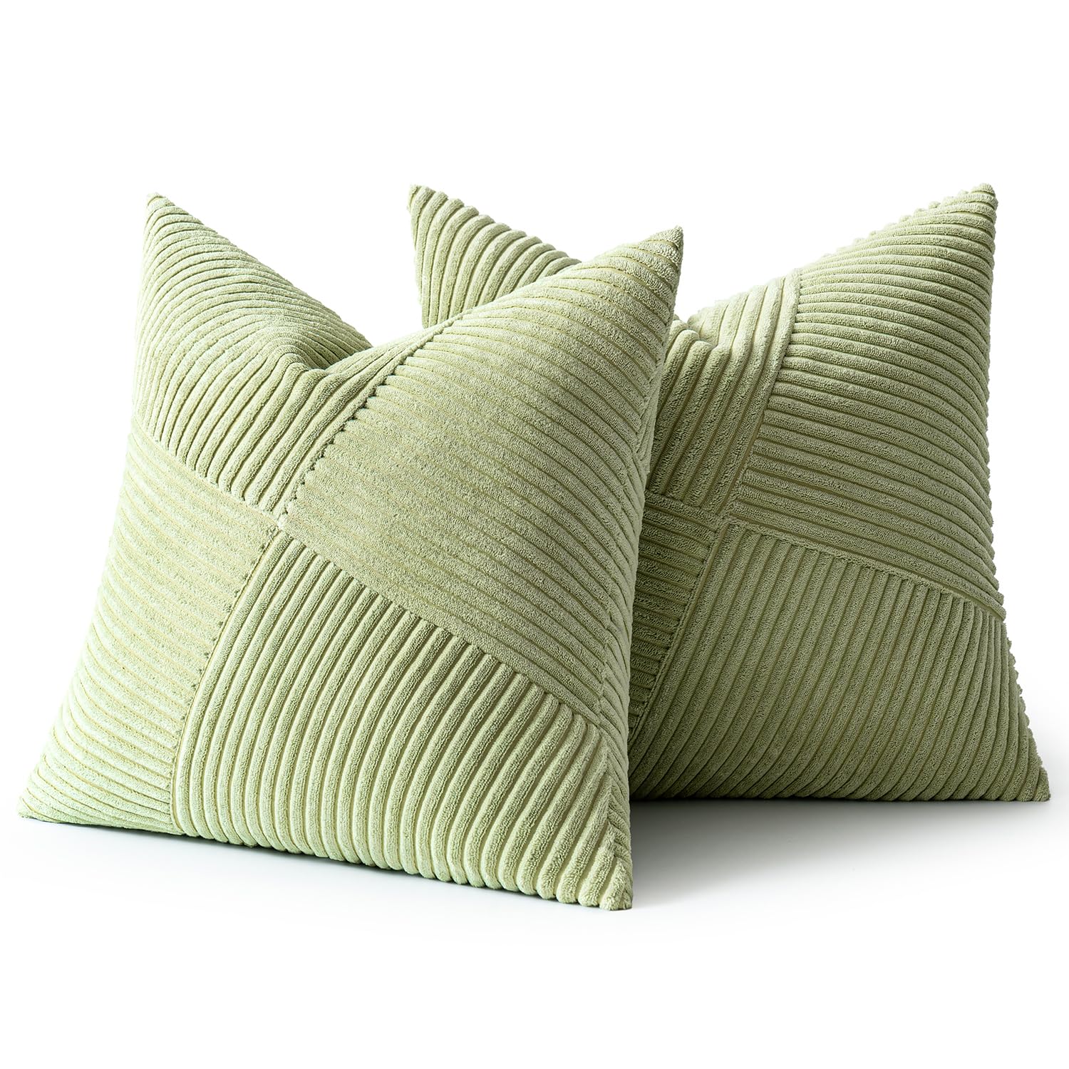 MIULEE Kissenbezug 40x40 Bohnengrün frühling Kordsamt 2er Set Kissenbezüge Zierkissenbezug Kissenhülle Sofakissen Dekokissen Streifen Muster Patchwork Design für Wohnzimmer
