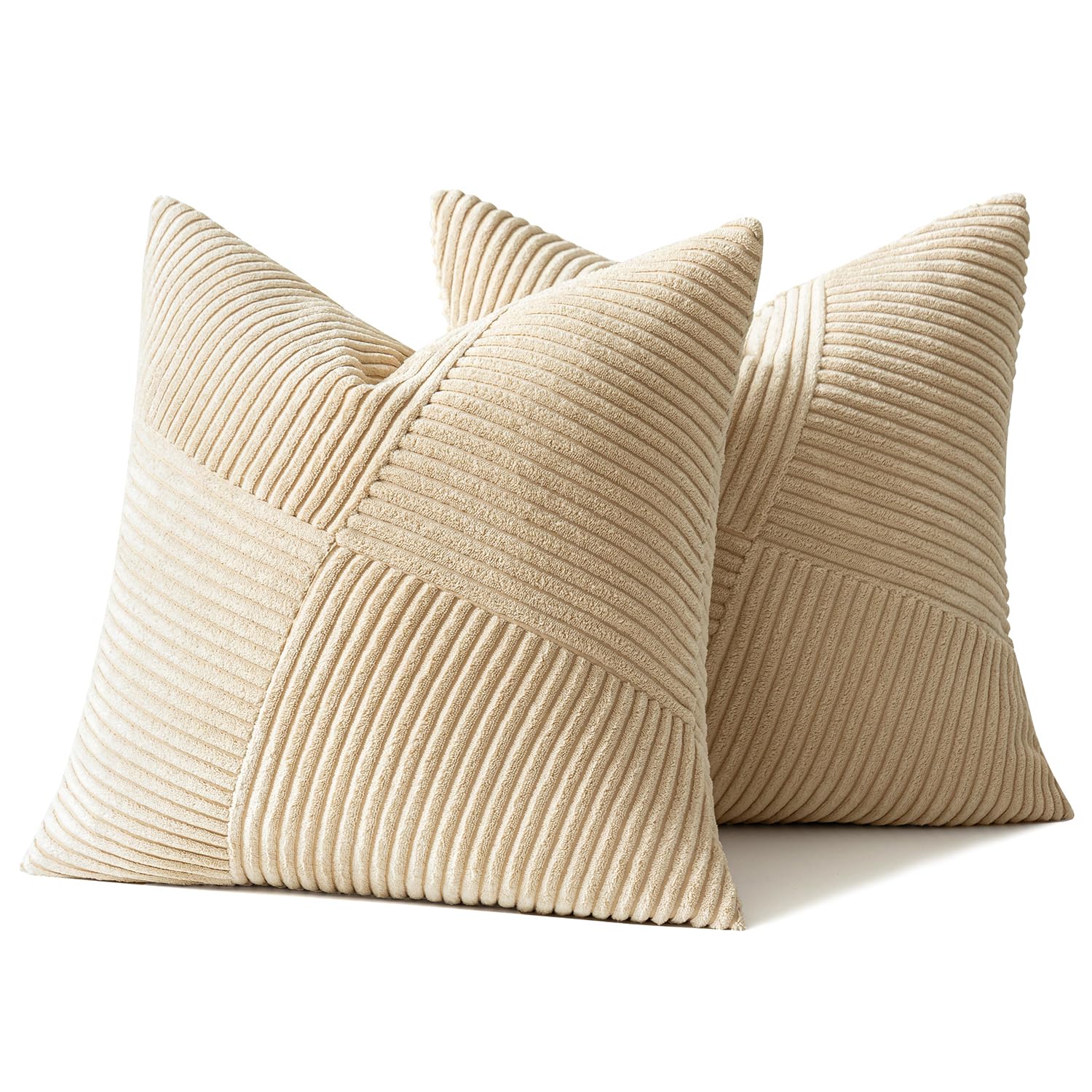 MIULEE Kissenbezug 45x45 Beige Kordsamt 2er Set Kissenbezüge Zierkissenbezug Kissenhülle Sofakissen Dekokissen Streifen Muster Patchwork Design für Wohnzimmer