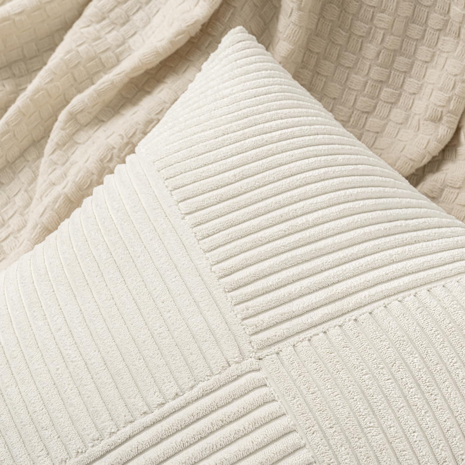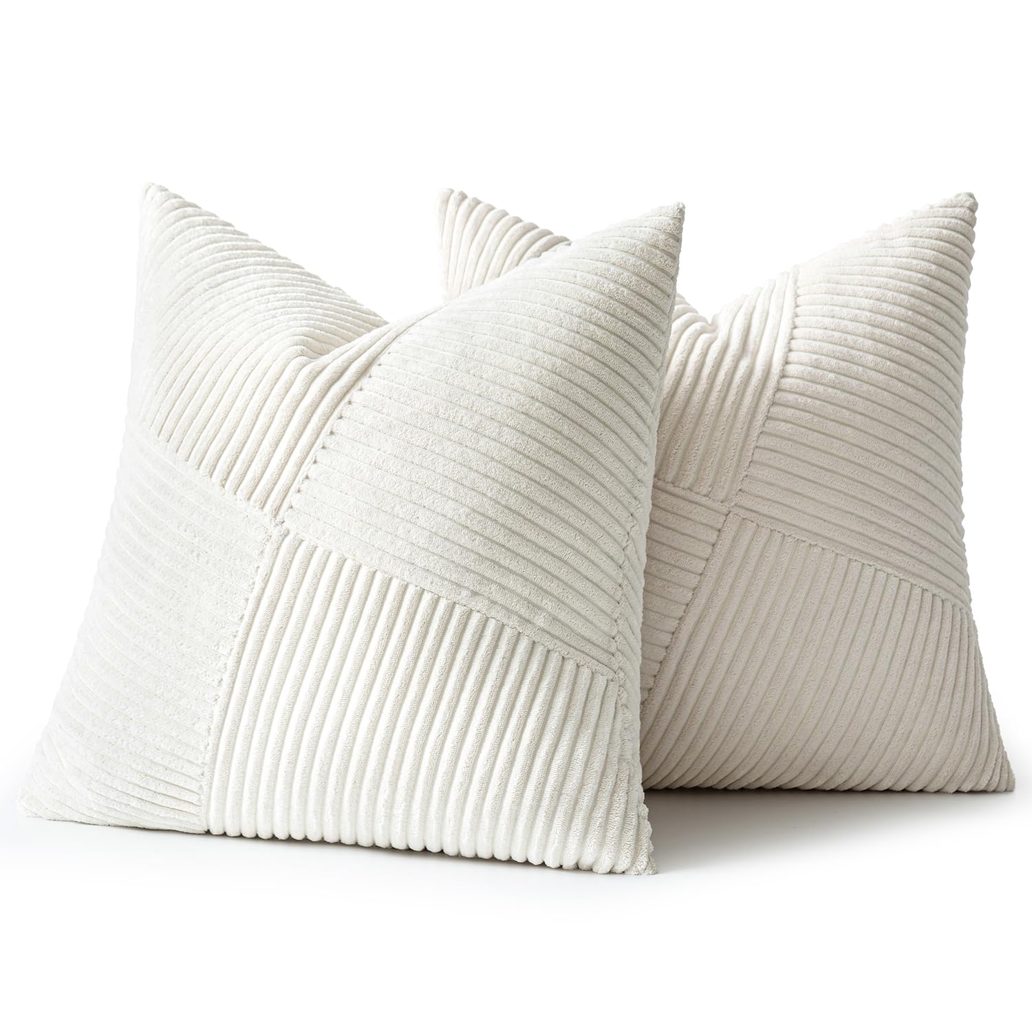 MIULEE Kissenbezug 60x60 Creme Kordsamt 2er Set Kissenbezüge Zierkissenbezug Kissenhülle Sofakissen Dekokissen Streifen Muster Patchwork Design für Wohnzimmer