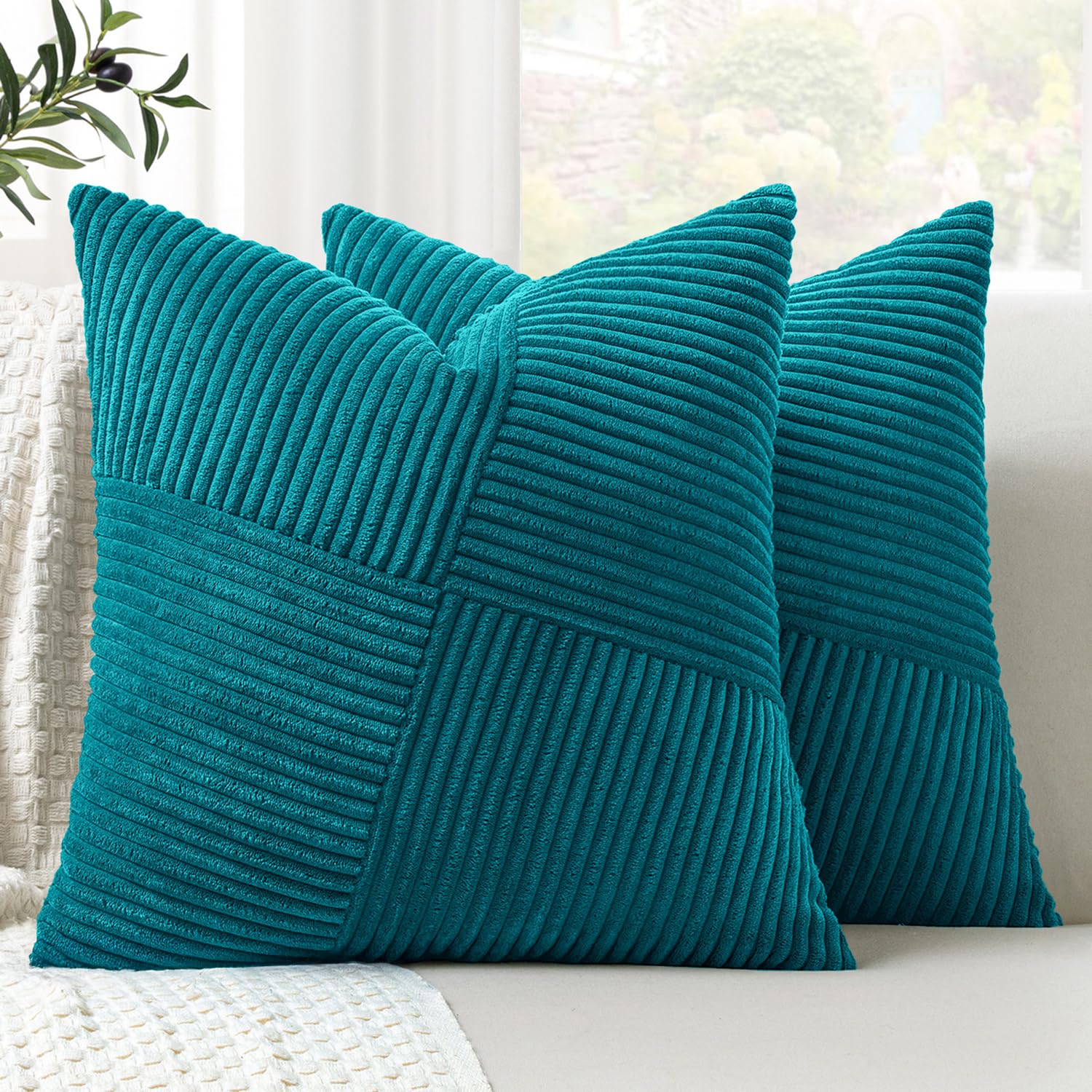 MIULEE Kissenbezug 40x40 Blauer See Kordsamt 2er Set Kissenbezüge Zierkissenbezug Kissenhülle Sofakissen Dekokissen Streifen Muster Patchwork Design für Wohnzimmer