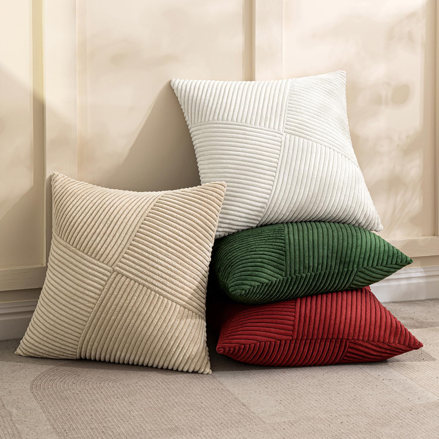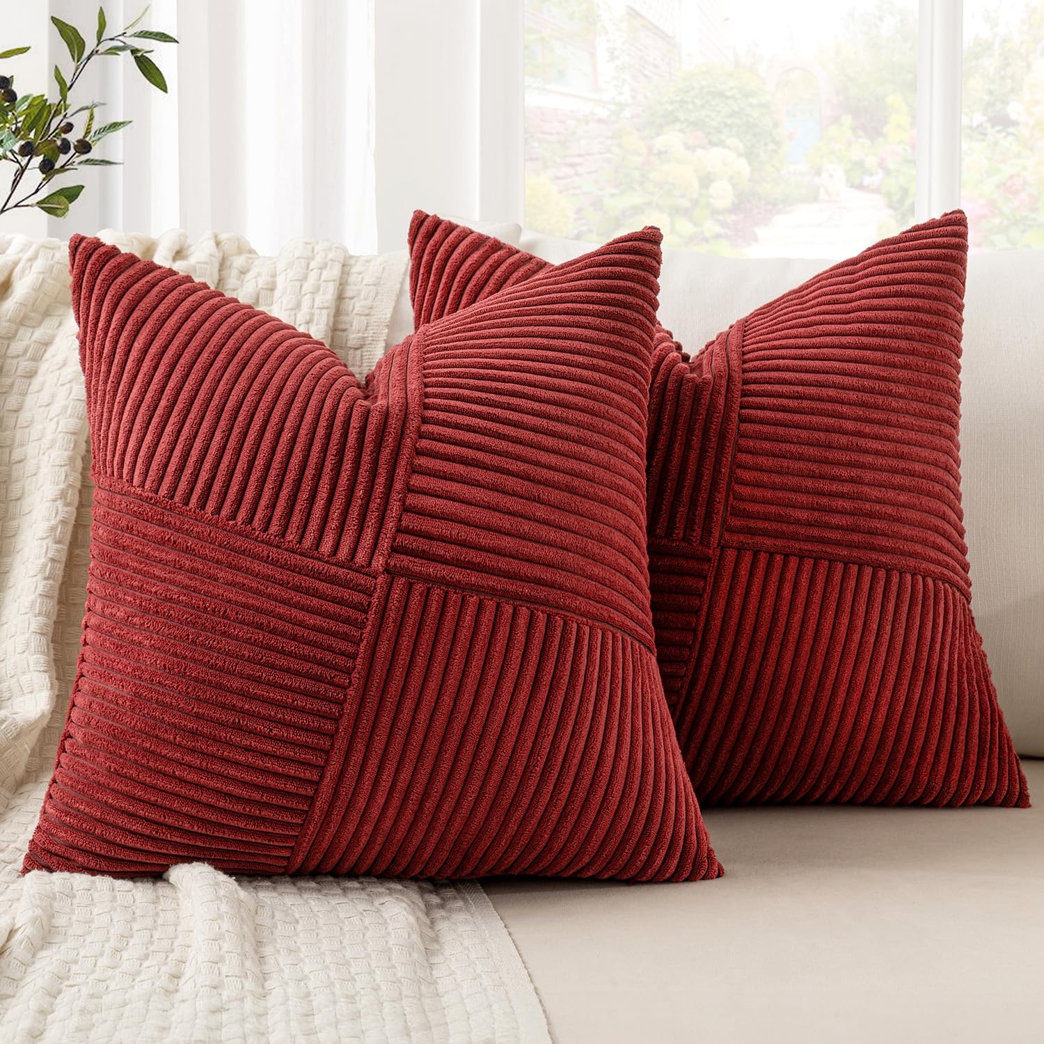 MIULEE Weihnachten Kissenbezug 45x45 Weinrot Kordsamt 2er Set Kissenbezüge Zierkissenbezug Kissenhülle Sofakissen Dekokissen Streifen Muster Patchwork Design für Wohnzimmer