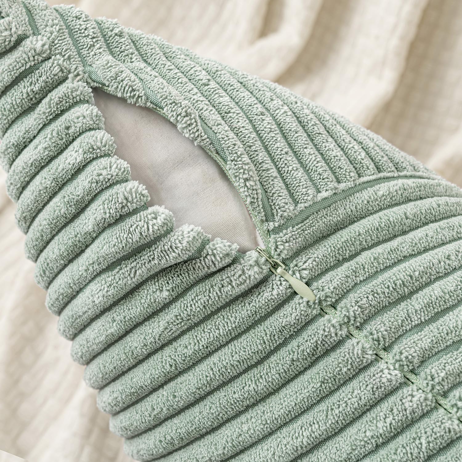 Design: Der Reissverschluss dieses Kissenbezugs ist versteckt, und die Farbe des Reissverschlusses ist gleich wie die Farbe des Kissenbezugs, was den ganze Kissenbezug harmonischer und schöner aussehen lässt.