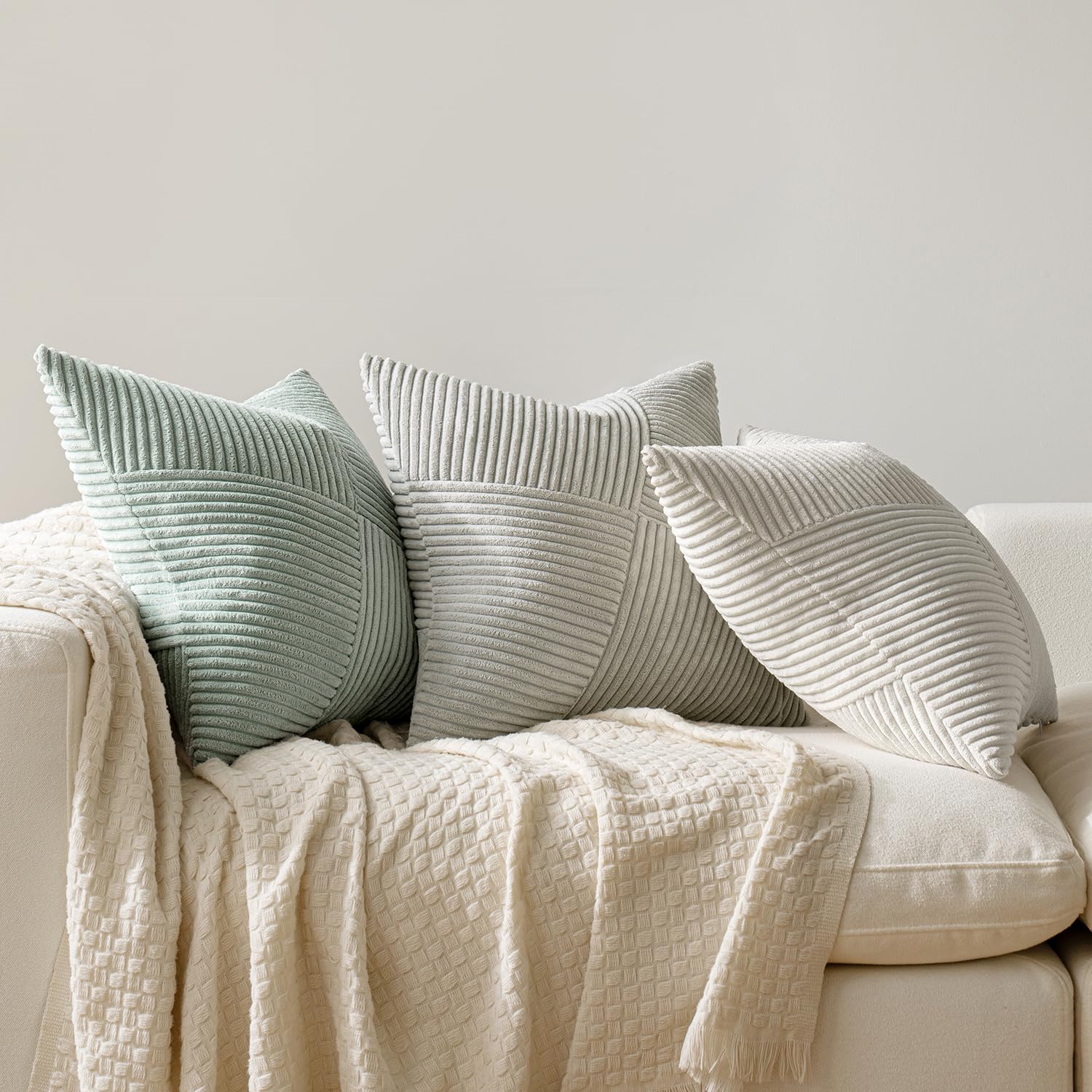 MIULEE Kissenbezug 40x40 Graugrün Kordsamt 2er Set Kissenbezüge Zierkissenbezug Kissenhülle Sofakissen Dekokissen Streifen Muster Patchwork Design für Wohnzimmer