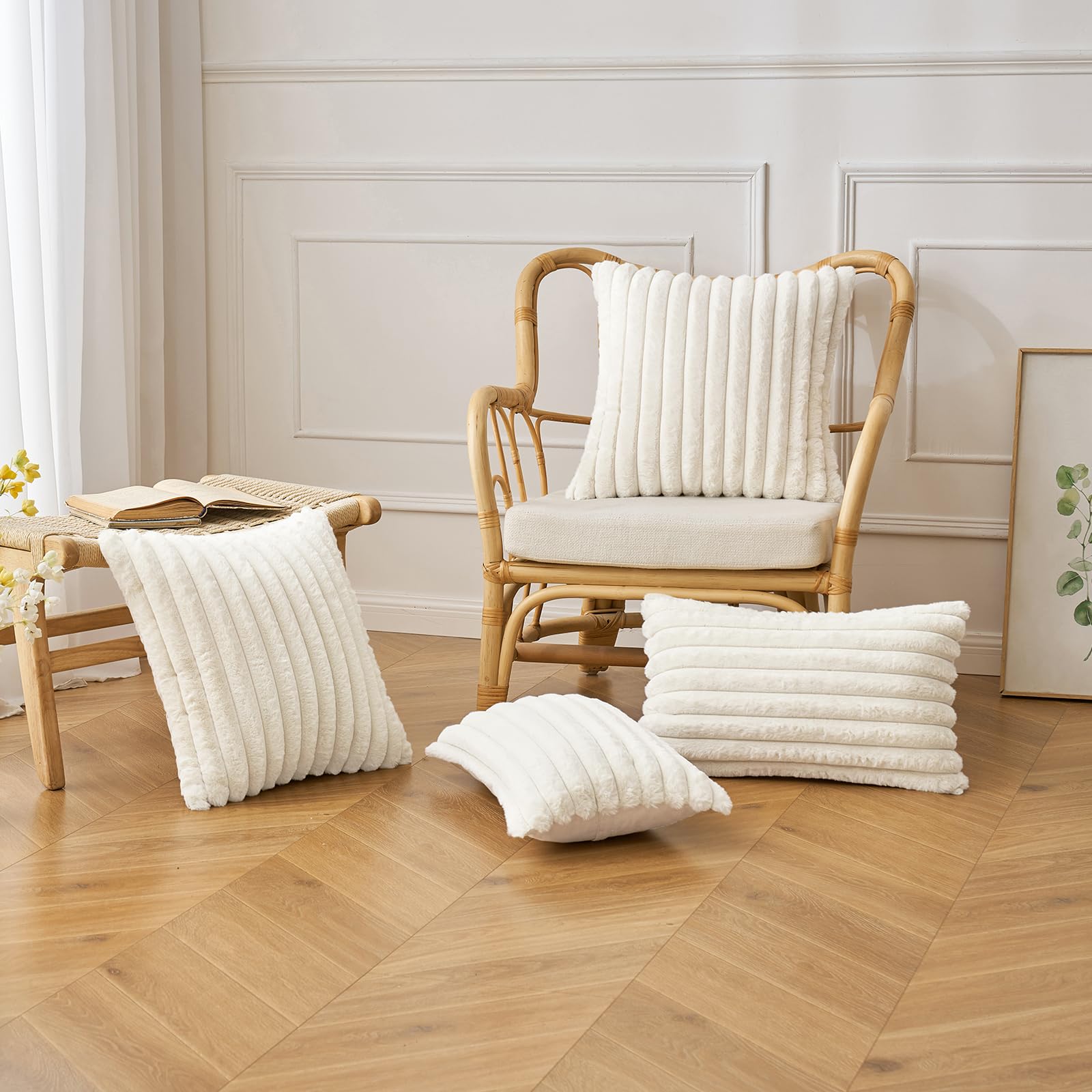 MIULEE Plüsch Kissenbezug 50x50 Weihnachten Deko Flauschige Kissenbezüge Kunstpelz Fell Sofakissen Flauschig Dekokissen Kissenhülle für Wohnzimmer Schlafzimmer Sofa Kuschelkissen Weiss 2er Set