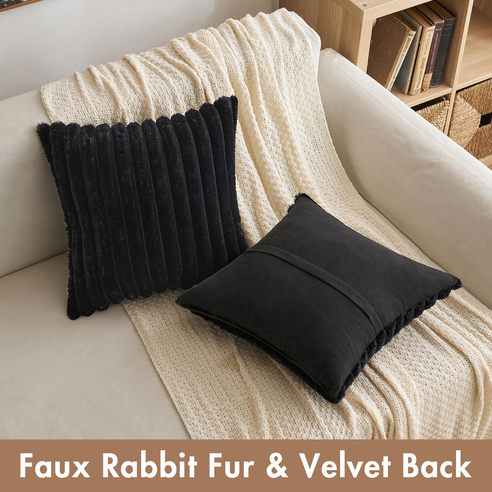 MIULEE Plüsch Kissenbezug 45x45 Deko Flauschige Kissenbezüge Kunstpelz Fell Sofakissen Flauschig Dekokissen Kissenhülle für Wohnzimmer Schlafzimmer Sofa Kuschelkissen Schwarz 2er Set