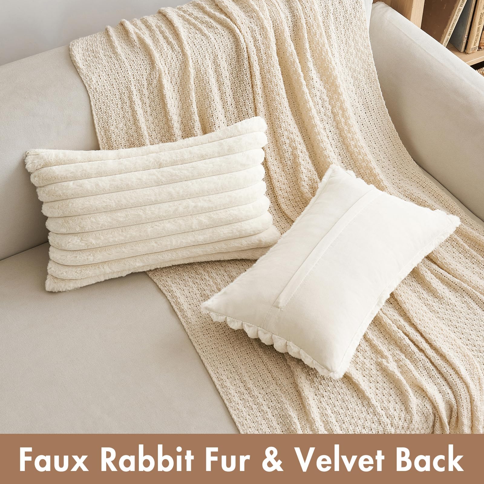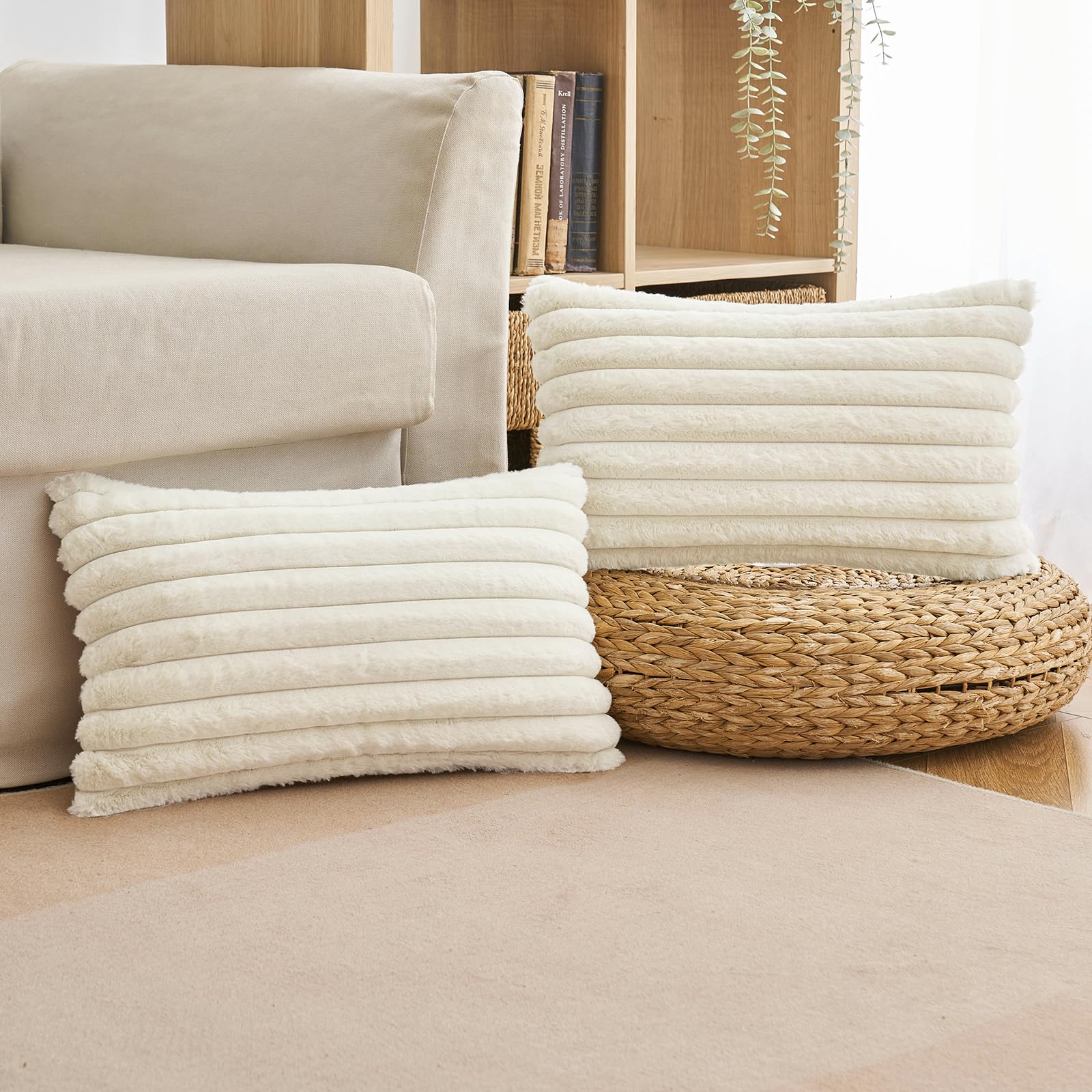 MIULEE Plüsch Kissenbezug 30x50 Weihnachten Deko Flauschige Kissenbezüge Kunstpelz Fell Sofakissen Flauschig Dekokissen Kissenhülle für Wohnzimmer Schlafzimmer Sofa Kuschelkissen Weiss 2er Set