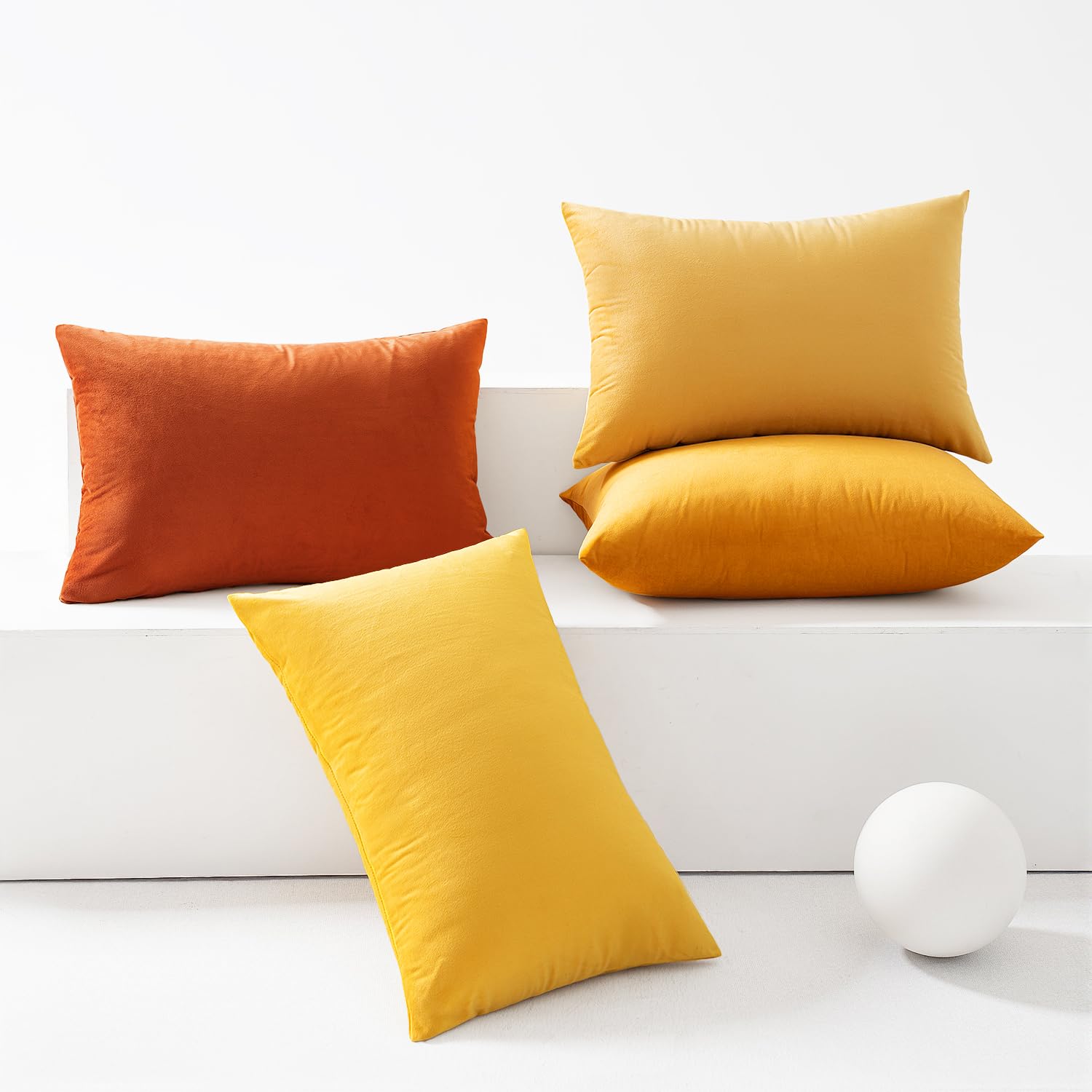 MIULEE Samt Kissenbezug 40x60 cm Kissenhülle Orange Serie 4er Set Sofakissen Samtkissen Dekorative Dekokissen Couchkissen Zierkissen Deko Farbverlauf Bezug Sofakissenbezug für Wohnzimmer Kinder Büro