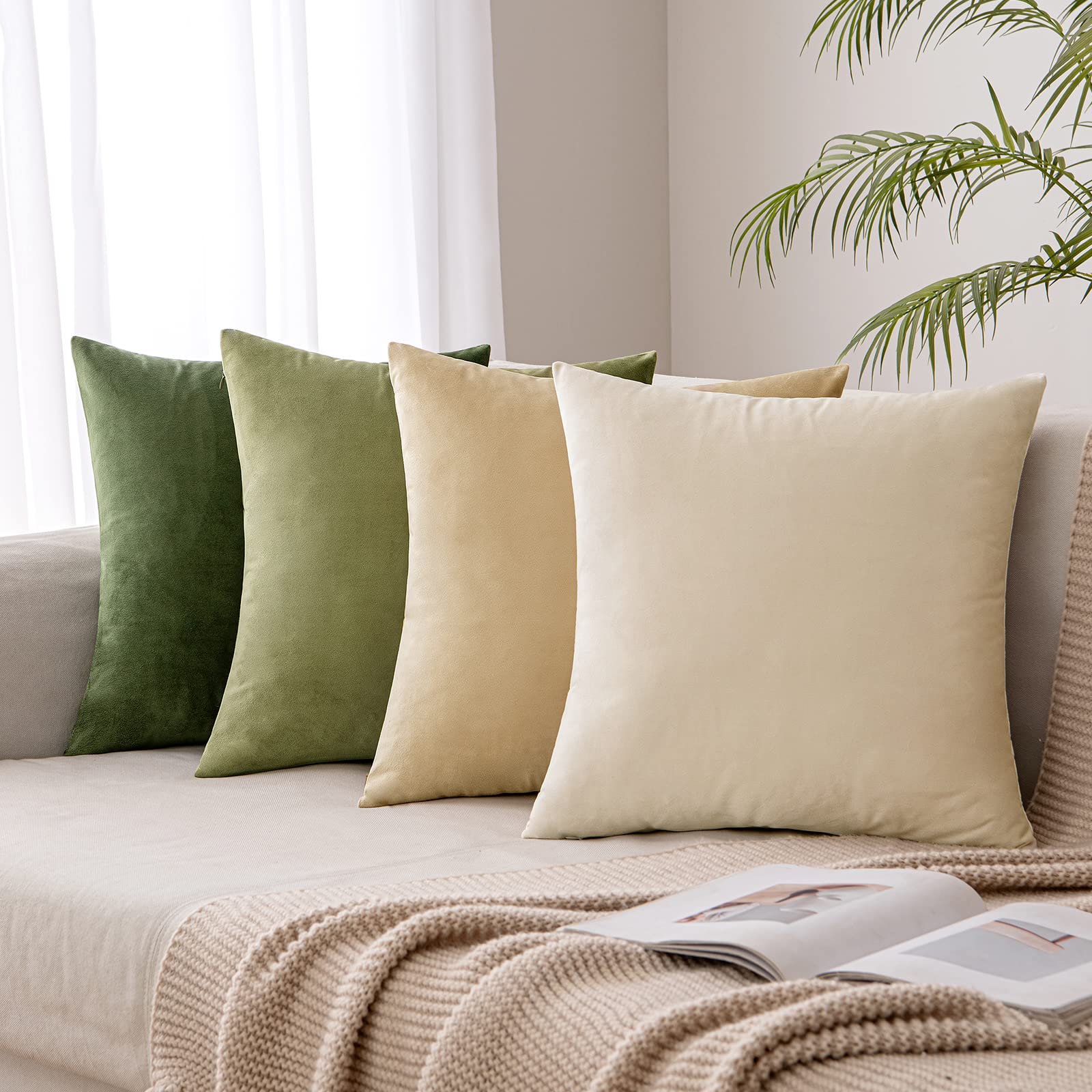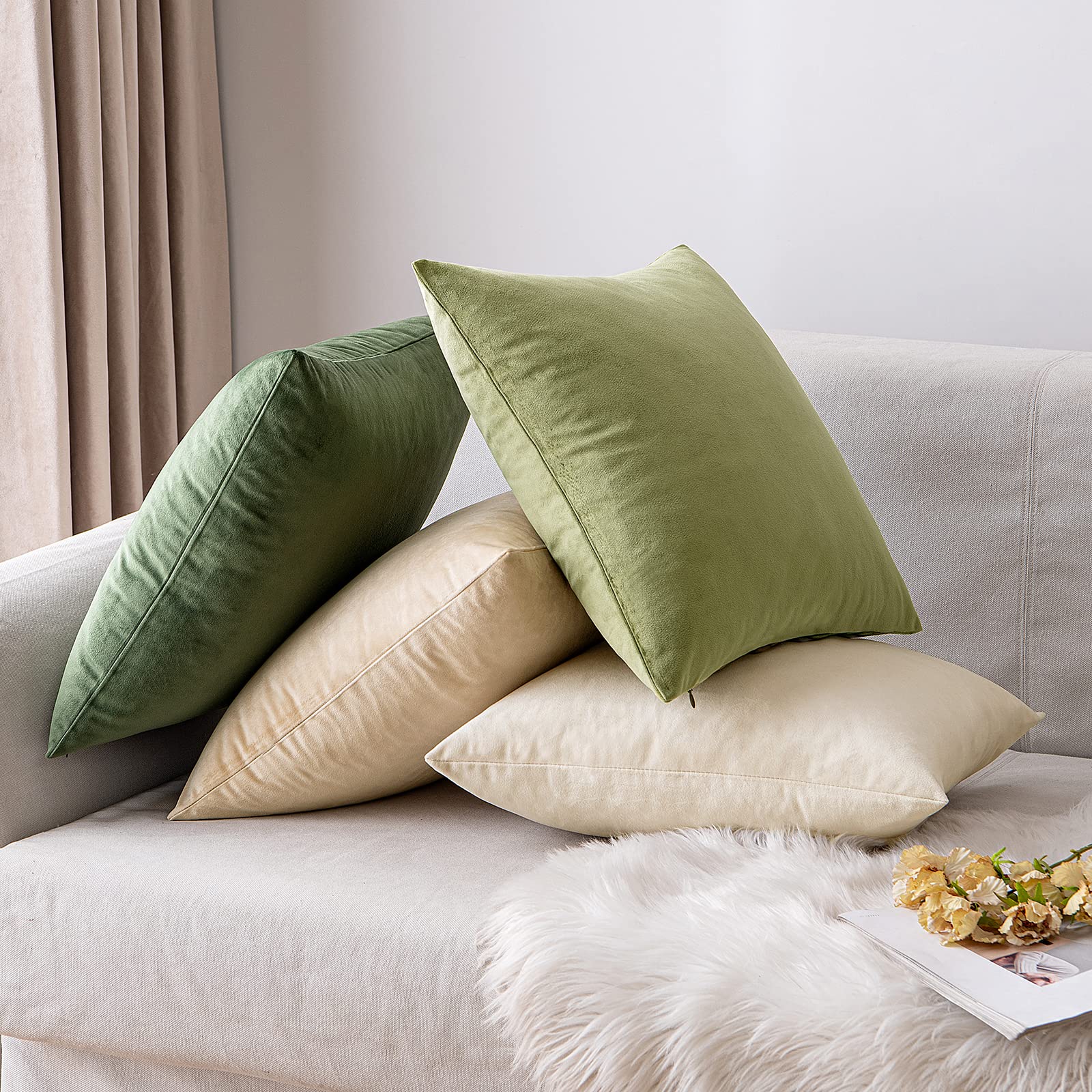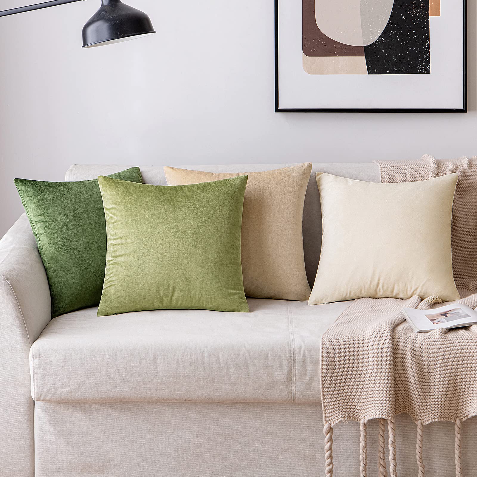 MIULEE Samt Kissenbezug 40x40 cm Kissenhülle Hellgrün Serie 4er Set Sofakissen Samtkissen Dekorative Dekokissen Zierkissen Deko Farbverlauf Bezug Sofakissenbezug für Wohnzimmer Kinder Büro