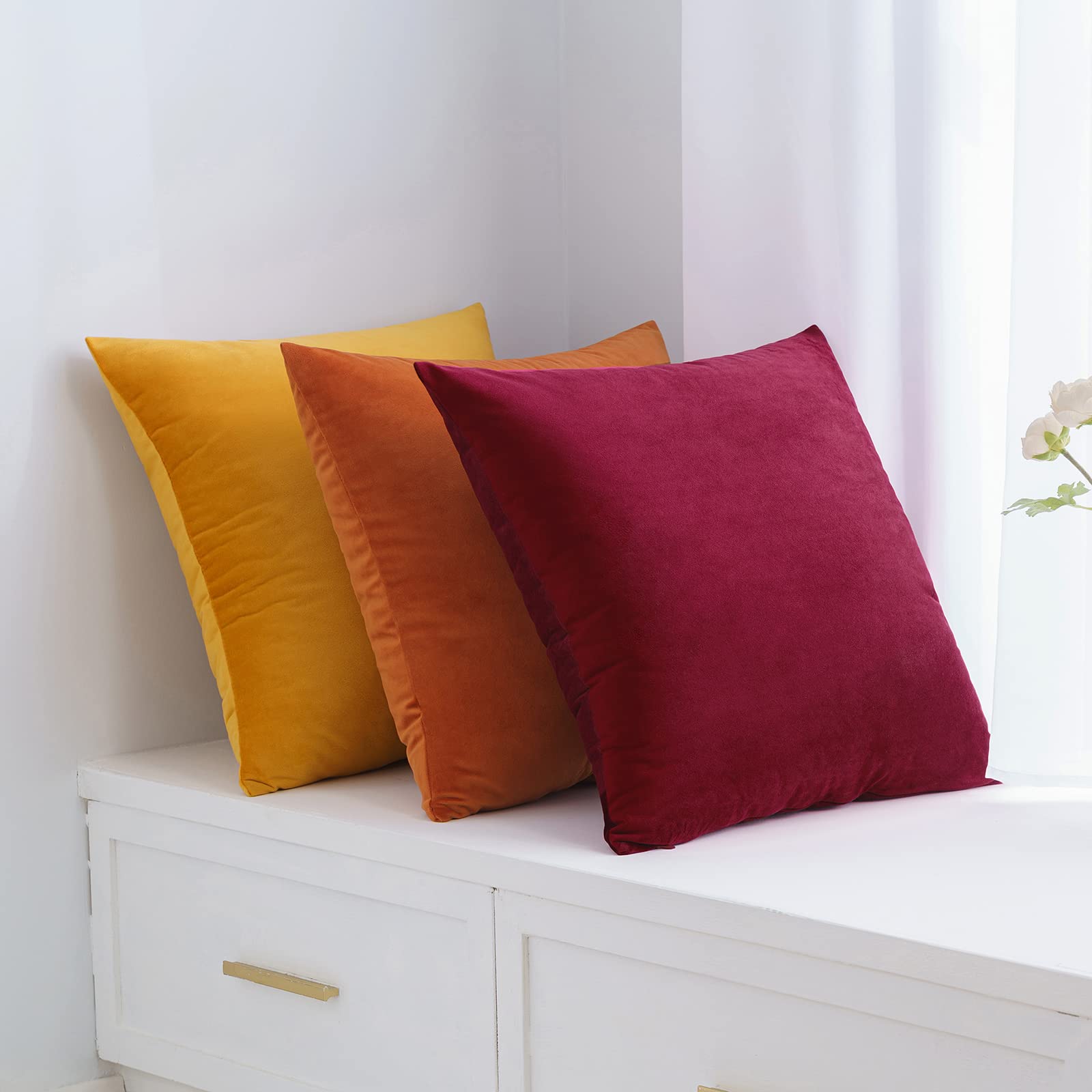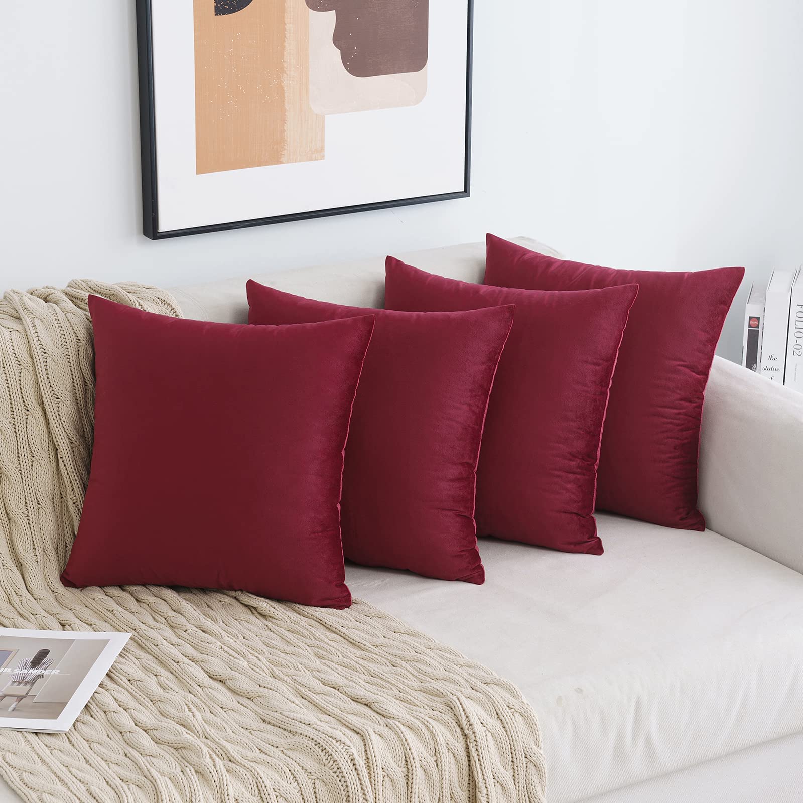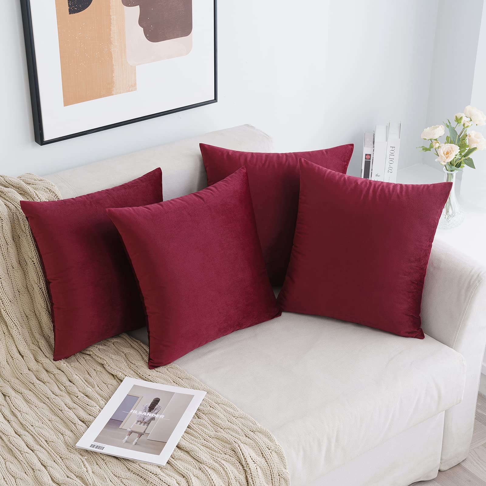 MIULEE Samt Kissenbezug 40x40 cm Kissenhülle Weinrot 4er Set Sofakissen Samtkissen Dekorative Dekokissen Couchkissen Zierkissen Bezug Sofakissenbezug für Wohnzimmer Schlafzimmer Büro