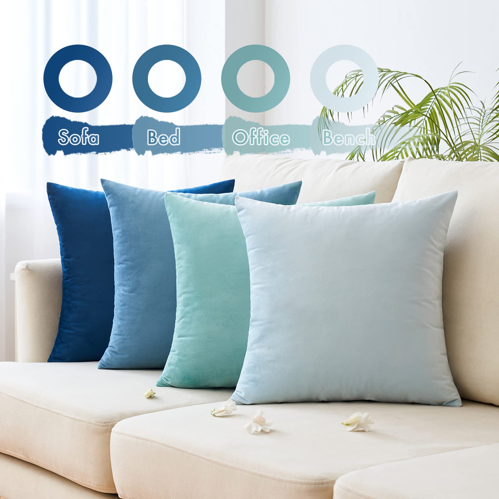 MIULEE Samt Kissenbezug 40x40 cm Kissenhülle Blau Serie 4er Set Sofakissen Samtkissen Dekorative Dekokissen Couchkissen Zierkissen Deko Farbverlauf Bezug Sofakissenbezug für Wohnzimmer Kinder Büro