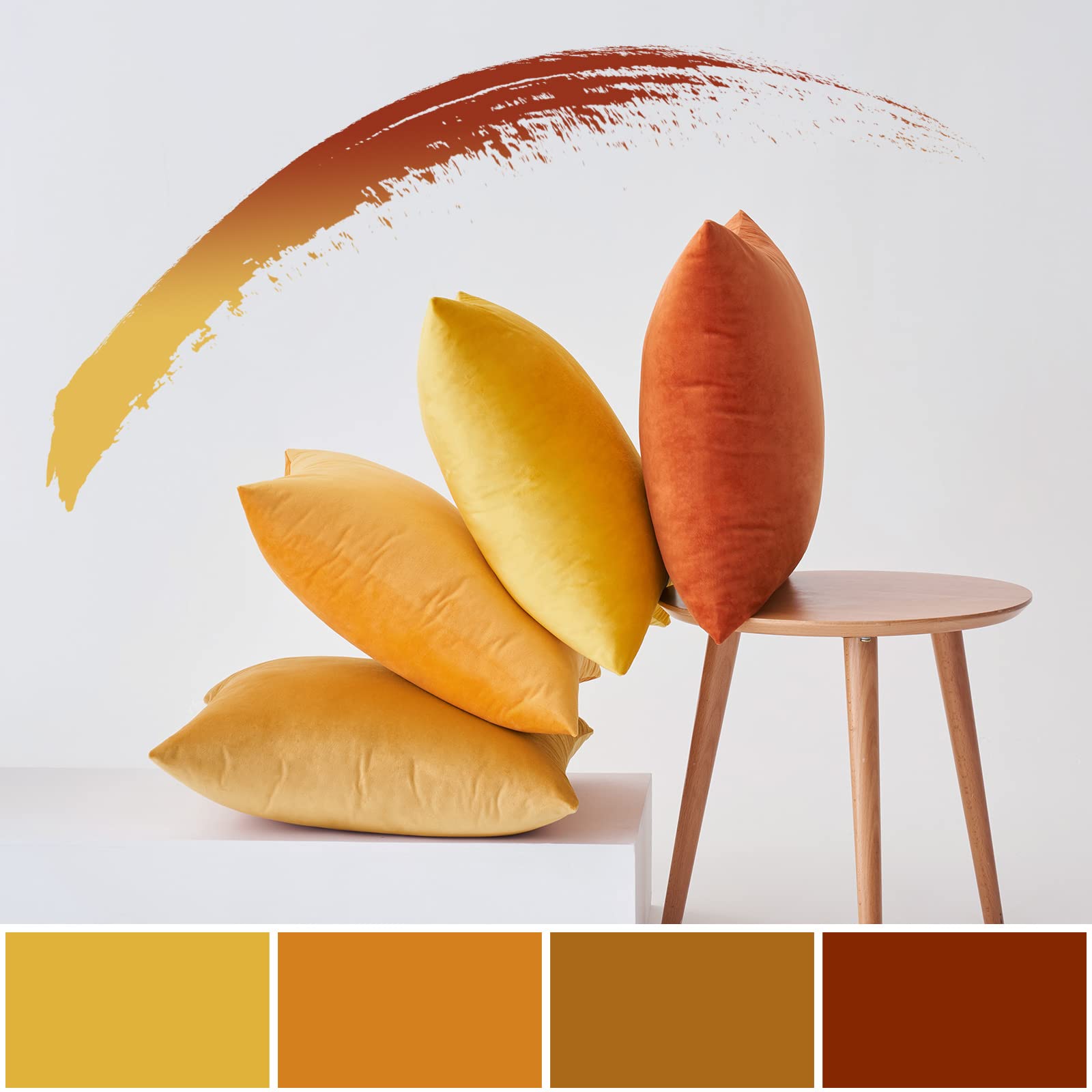 MIULEE Samt Kissenbezug 50x50 cm Kissenhülle Orange Serie 4er Set Sofakissen Samtkissen Dekorative Dekokissen Couchkissen Zierkissen Deko Farbverlauf Bezug Sofakissenbezug für Wohnzimmer Kinder Büro