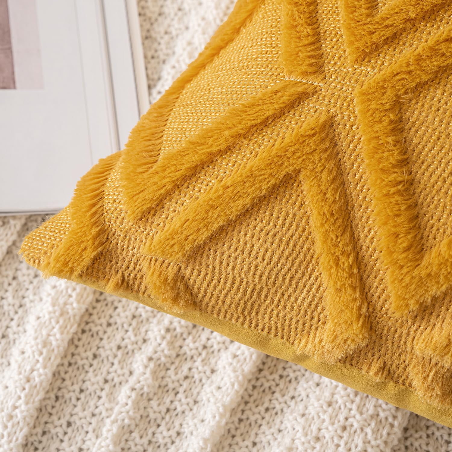 MIULEE 2er Set Kissenbezug Zierkissen Wolle Kissenbezüge Samt Fellkissen Boho Deko Kissen Flauschig Sofakissen Dekokissen für Sofa Schlafzimmer Wohnzimmer 40x40 cm Ingwergelb