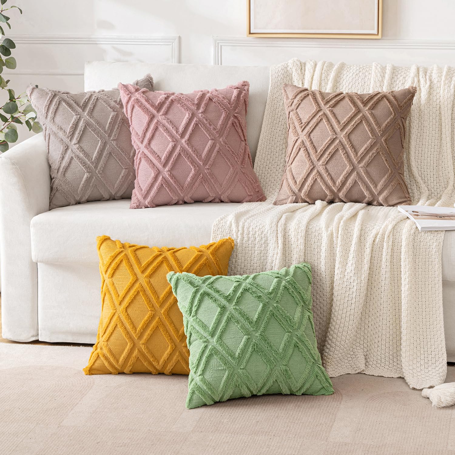 Klassisches Design: Die plüschigen Kissenbezüge sind mit einem quadratischen Muster versehen, das für unvergleichliche Weichheit und ästhetischen Genuss sorgt. Wählen Sie einen schlichten und klassischen Kissenbezug, um ein modernes Interieur mit einem Design zu gestalten.