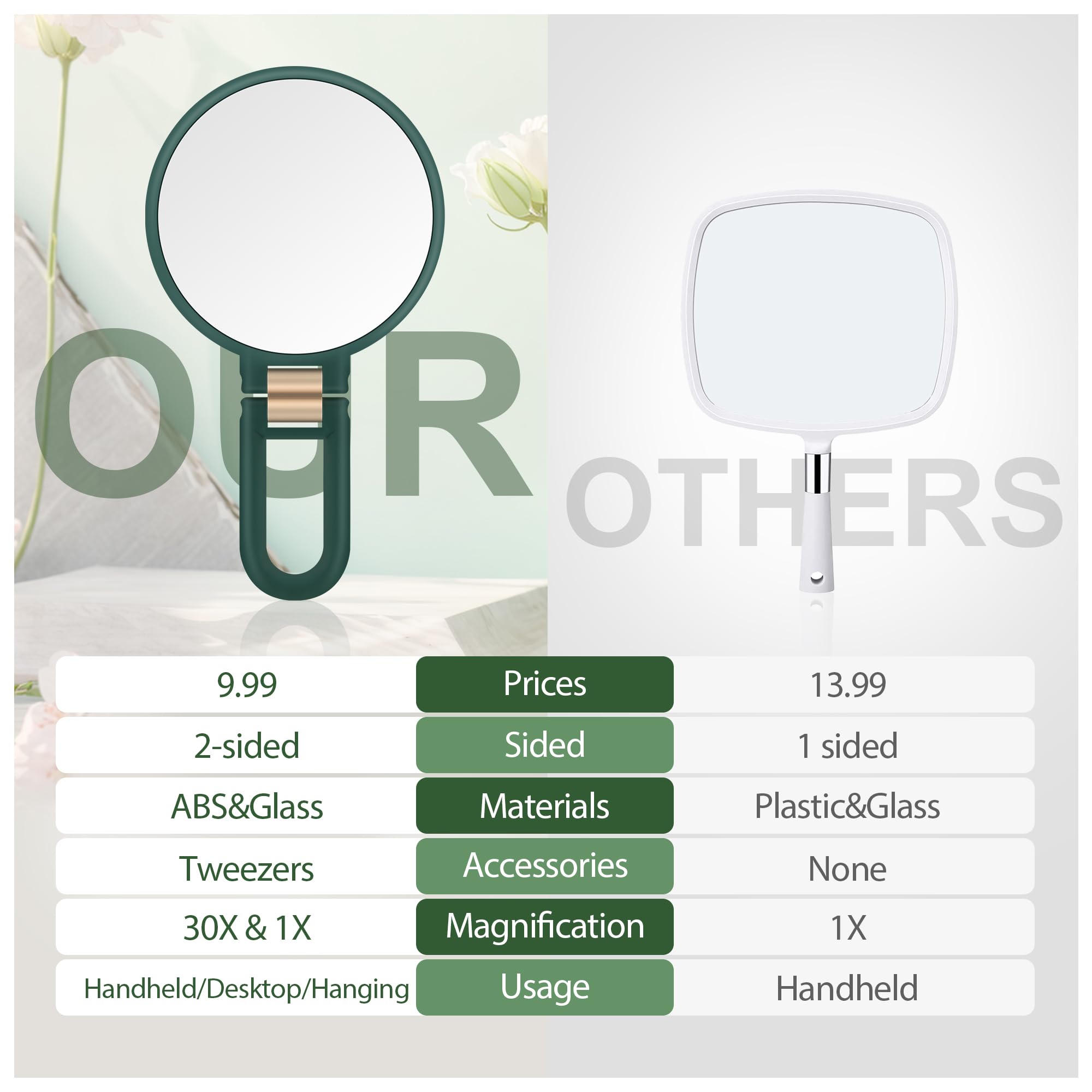 Das elegante, smaragdgrüne Design verleiht dem Spiegel einen modernen, frischen Look. Ideal als Geschenk für Frauen zu Geburtstagen, Feiertagen oder besonderen Anlässen.